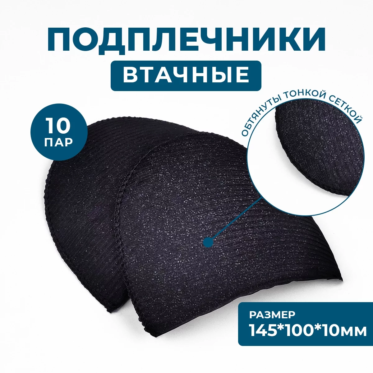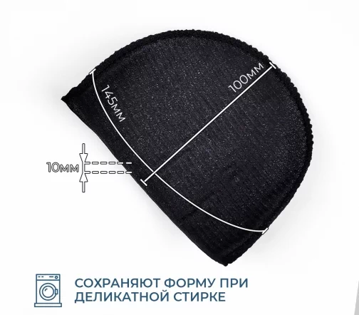 Толщина 10мм, длина (до плеча) 100мм, окат 150мм. Используют при пошиве блузок и платьев из легких тканей с втачной формой рукава. Плечевые накладки изготавливаются из поролоновых заготовок и обшиваются трикотажным полотном различной плотности.