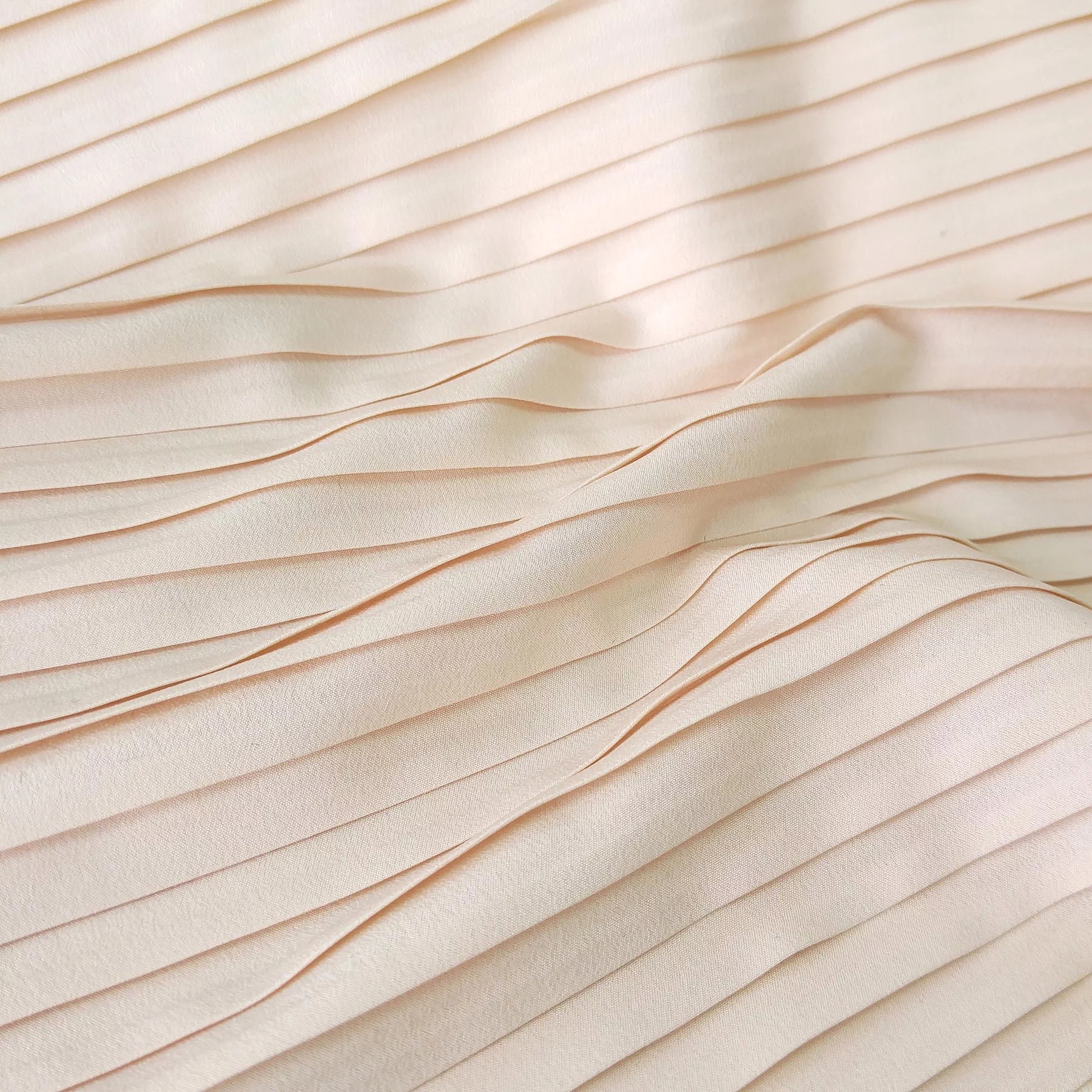Креповое плиссе прекрасного качества. Складка в готовом виде 1,0 см. Плиссе визуально вытягивает и стройнит фигуру, именно поэтому уже который год юбки и платья плиссе находятся в числе топовых вещей женского гардероба в классическом исполнении – миди и в пол, или в оригинальном ассиметричном крое.