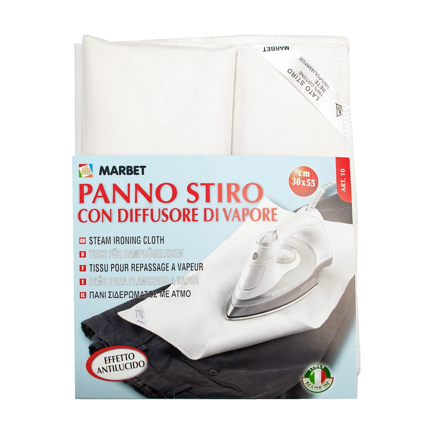 Благодаря специально разработанной структуре (сверху - хлопок, снизу - нейлон) происходит оптимальное распределение пара и тепла. Облегчает процесс глажки, не оставляет блеска на темных тканях и синтетике. Разрешена машинная стирка.