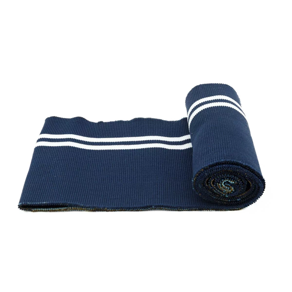 Двухцветный трикотажный подвяз (темно-синий/белый) с контрасными полосами. Трикотажные подвязы используются при шитье спортивной одежды, одежды для дома и отдыха. Подходят также для замены изношенных деталей: резинок на манжетах и нижней кромке свитера, куртки, толстовки, на поясе брюк. Изготовлен из синтетического материала – полиэстер. Полиэстер быстро высыхает, устойчив к износу и не требует использования специальных моющих средств. Верните вторую жизнь Вашим любимым вещам! Состав: 100% полиэстер. Длина 1,25 м