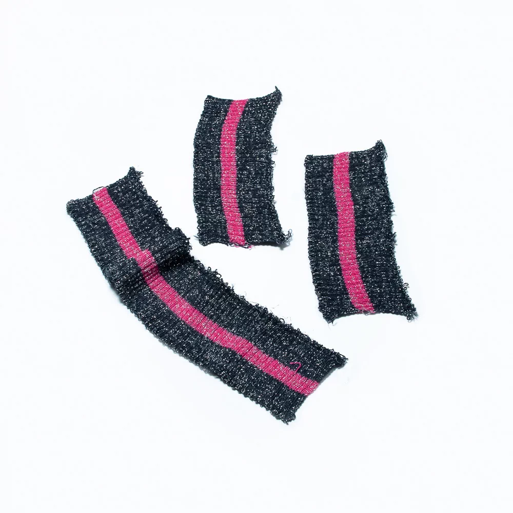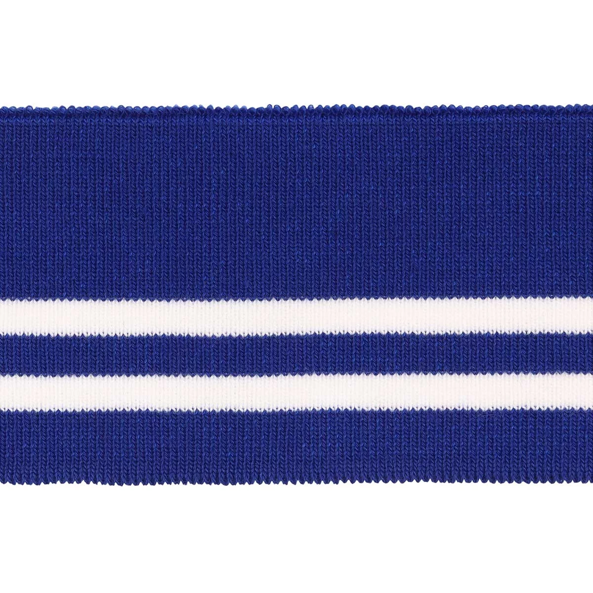 Трикотажный подвяз с контрасными полосами. Подвязы используются при шитье спортивной одежды, одежды для дома и отдыха. Подходят также для замены изношенных деталей: резинок на манжетах и нижней кромке свитера, куртки, толстовки, на поясе брюк и др. Изготовлен из синтетических материалов – полиэстера и спандекса. Полиэстер быстро высыхает, устойчив к износу и не требует использования особых моющих средств. Волокна спандекса придают изделию эластичность – способность растягиваться и при этом сохранять форму. Размеры ленты: ширина 6 см, длина 1 м.