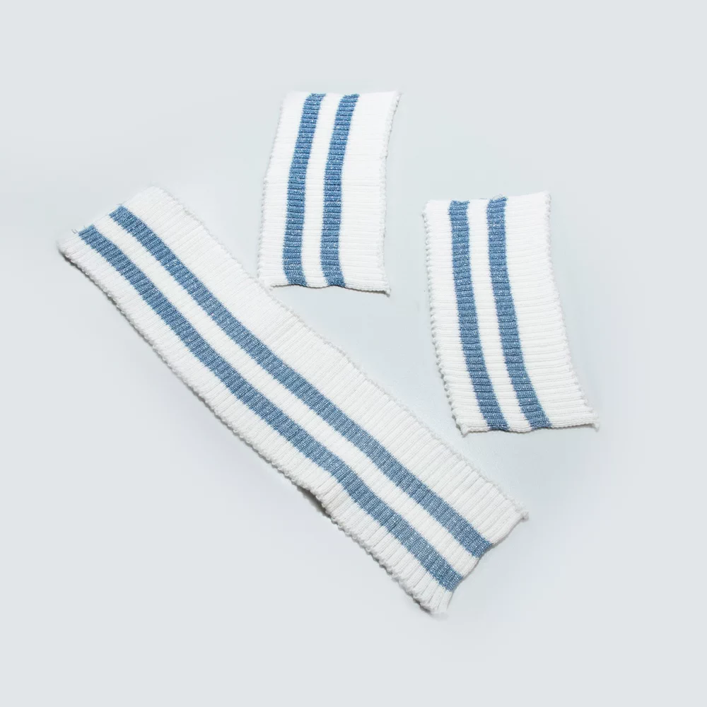 Трикотажный подвяз с контрасными полосами. Подвязы используются при шитье спортивной одежды, одежды для дома и отдыха. Подходят также для замены изношенных деталей: резинок на манжетах и нижней кромке свитера, куртки, толстовки, на поясе брюк и др. Состав: 35% хлопок, 65% полиэстер. Это синтетическое волокно сохраняет форму и цвет длительное время, не дает усадки, не требует использования специальных моющих средств. Не требует дополнительной обработки перед пришиванием. Размер ленты: ширина 7 см, длина 80 см.