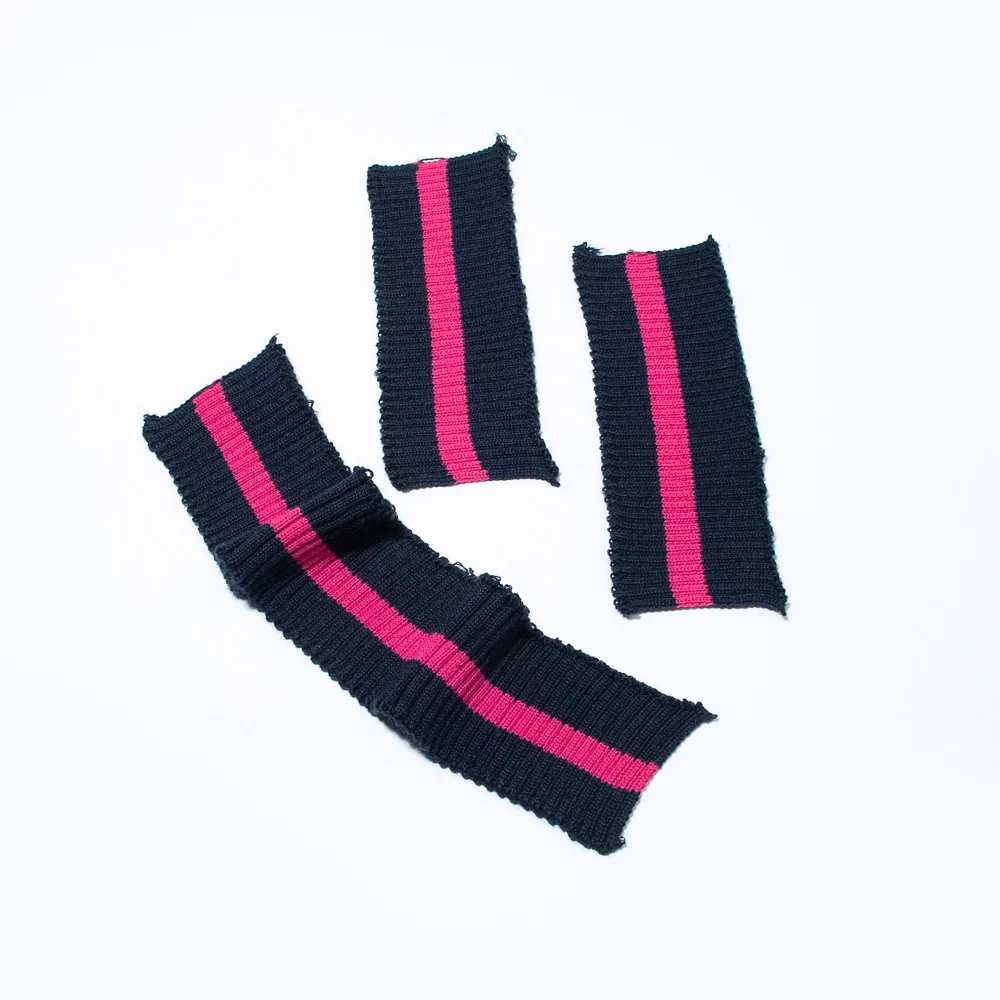 Трикотажный подвяз с контрасными полосами. Подвязы используются при шитье спортивной одежды, одежды для дома и отдыха. Подходят также для замены изношенных деталей: резинок на манжетах и нижней кромке свитера, куртки, толстовки, на поясе брюк и др. Состав: 35% хлопок, 65% полиэстер. Это синтетическое волокно сохраняет форму и цвет длительное время, не дает усадки, не требует использования специальных моющих средств. Не требует дополнительной обработки перед пришиванием. Размер ленты: ширина 7 см, длина 80 см.
