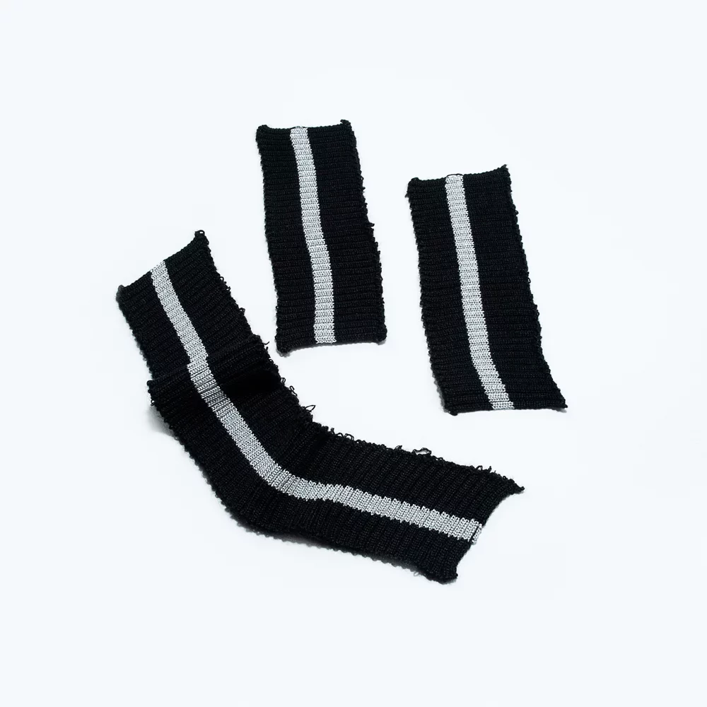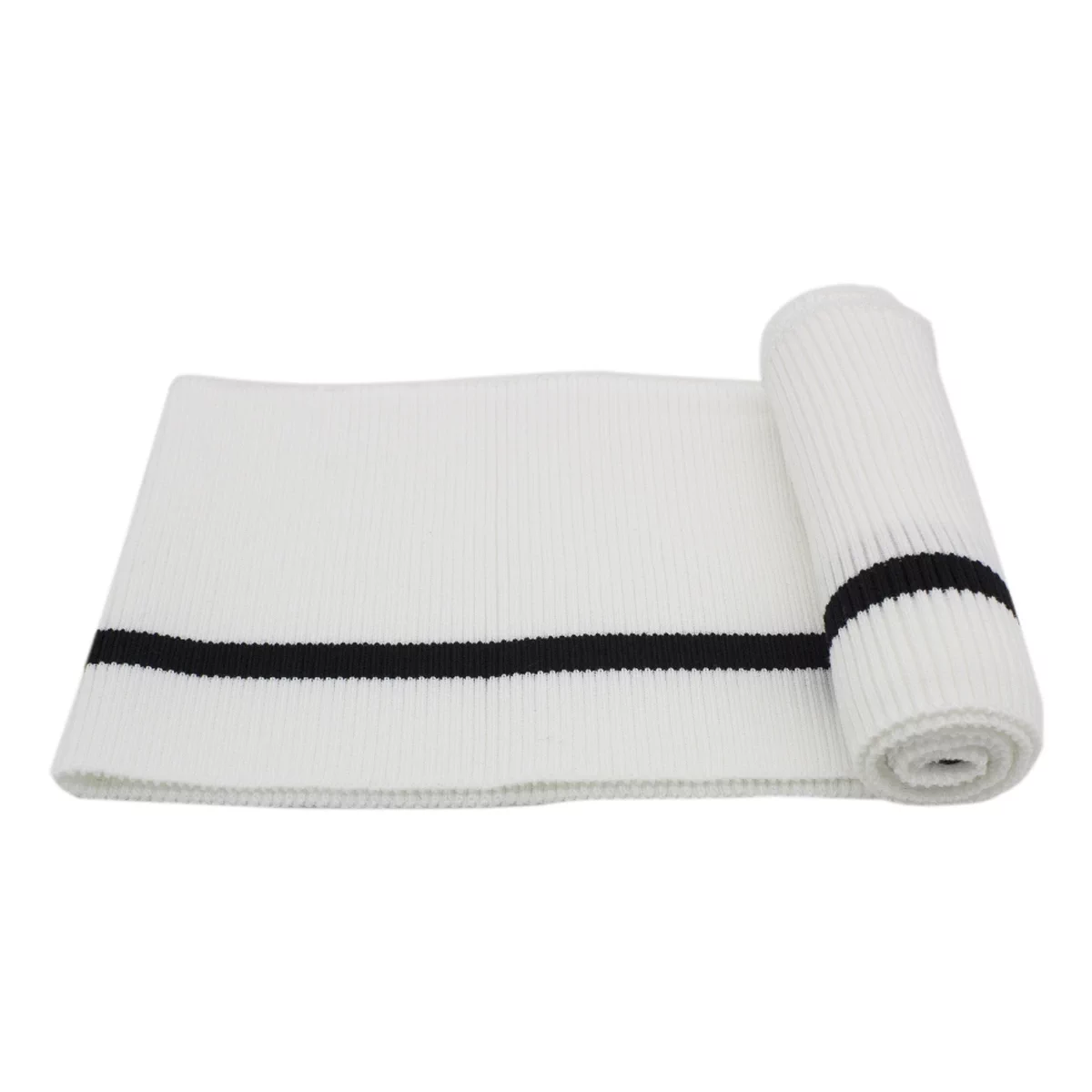 Трикотажный подвяз с контрасными полосами. Подвязы используются при шитье спортивной одежды, одежды для дома и отдыха. Подходят также для замены изношенных деталей: резинок на манжетах и нижней кромке свитера, куртки, толстовки, на поясе брюк и др. Изготовлен из синтетических материалов – полиэстера и спандекса. Полиэстер быстро высыхает, устойчив к износу и не требует использования особых моющих средств. Волокна спандекса придают изделию эластичность – способность растягиваться и при этом сохранять форму. Размеры ленты: ширина 14 см, длина 90 см.