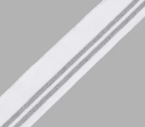 Подвяз трикотажный в полоску, с люрексом, 4см*1м, арт. 3AR2873-1, белый/серебро