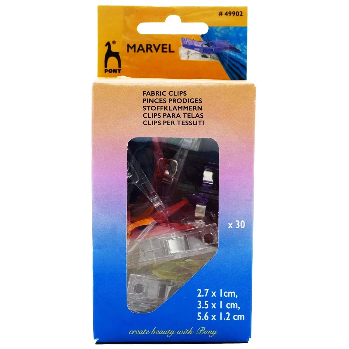 Зажимы (клипсы) для ткани, пластик, 2,7х1см, 3,5х1см, 5,6х1,2см, 30 шт., PONY 49902