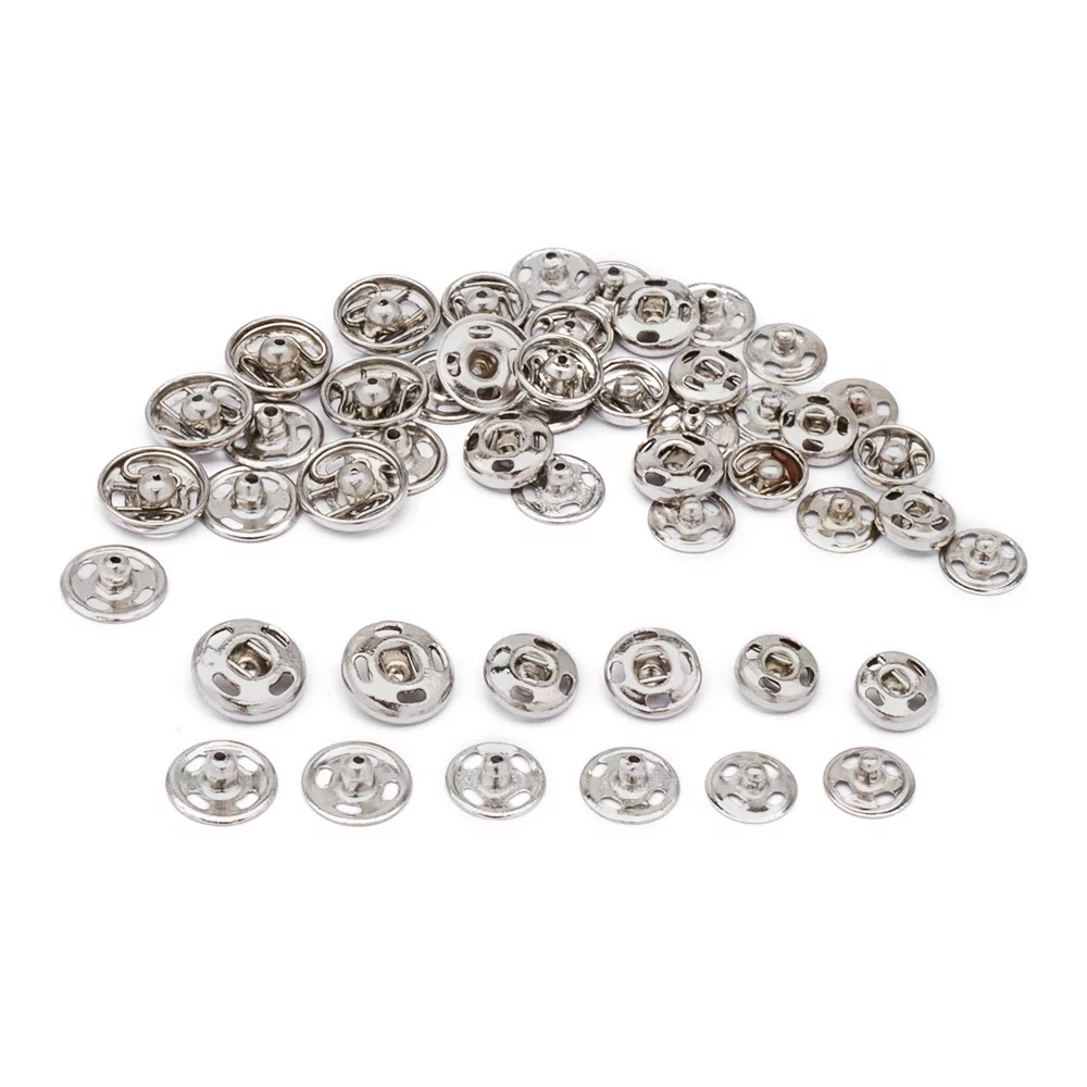 76501 PONY Кнопки пришивные ассорти, 5/6/7 мм, металл, серебристый, 24 шт.