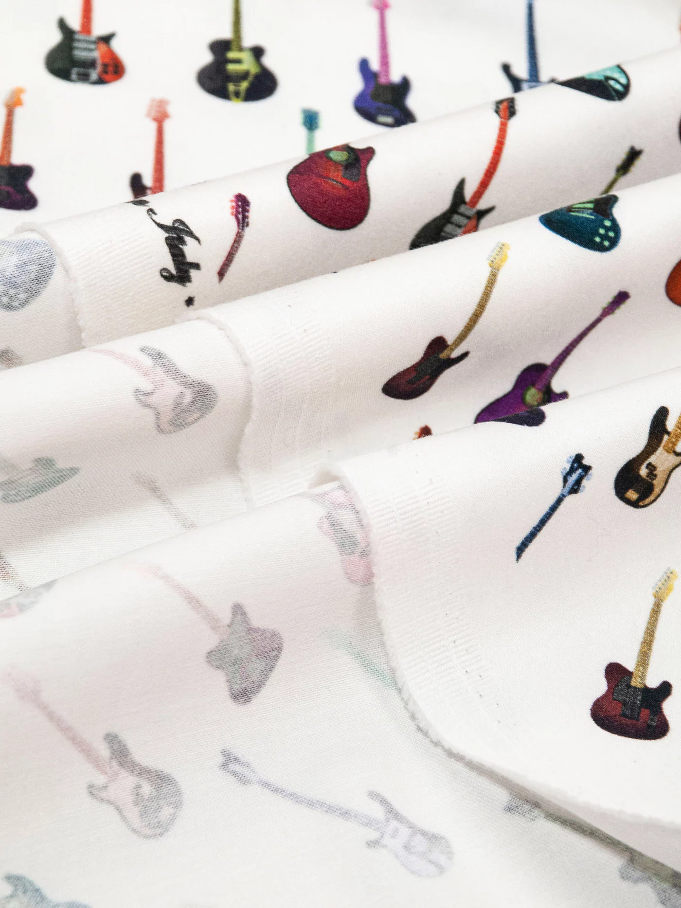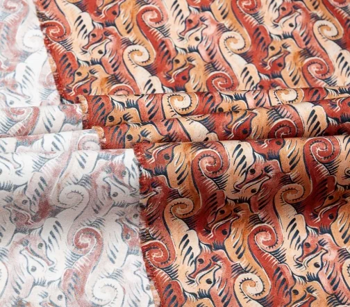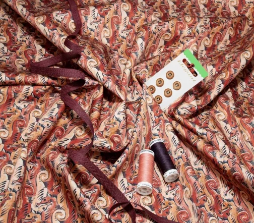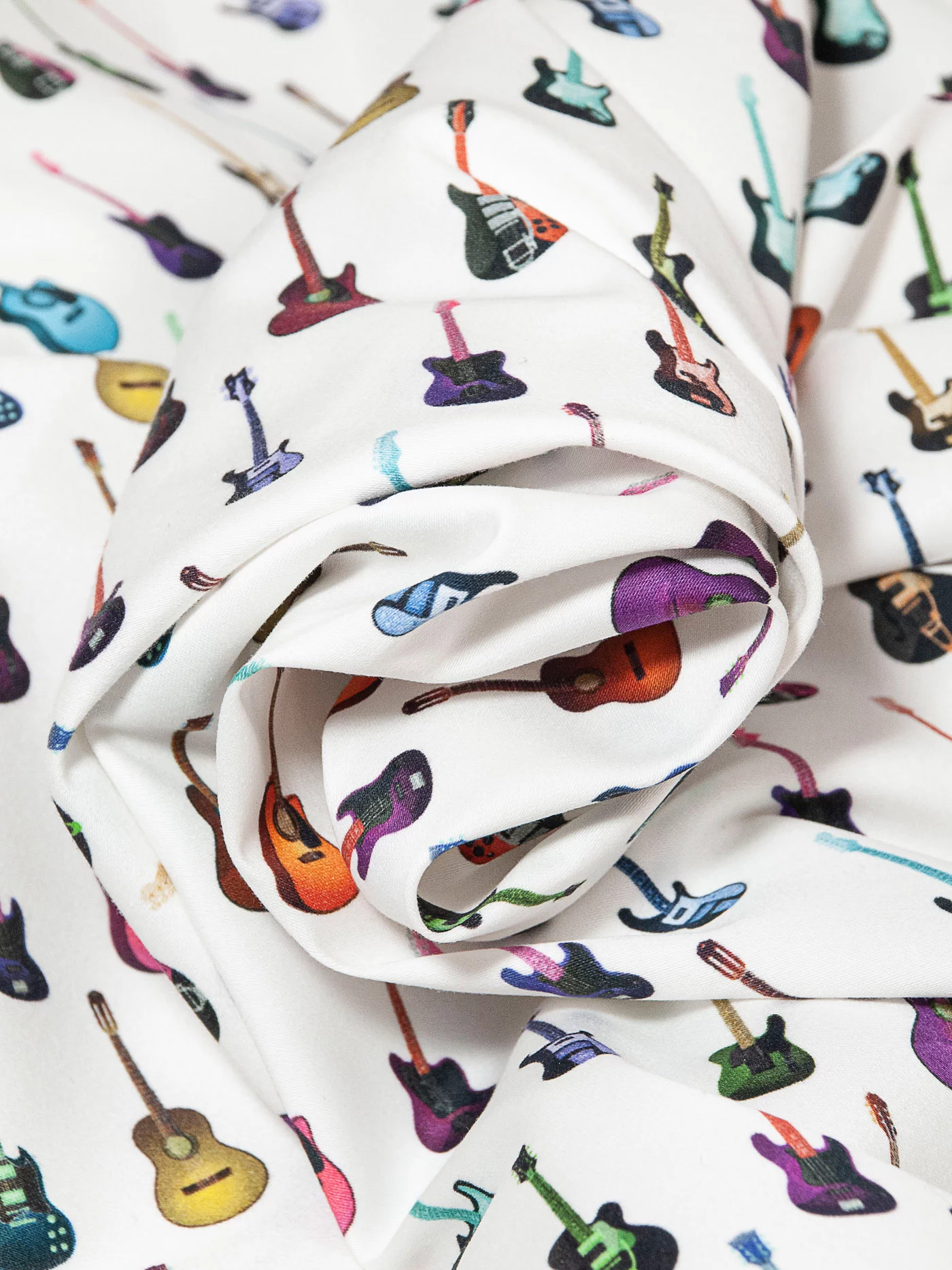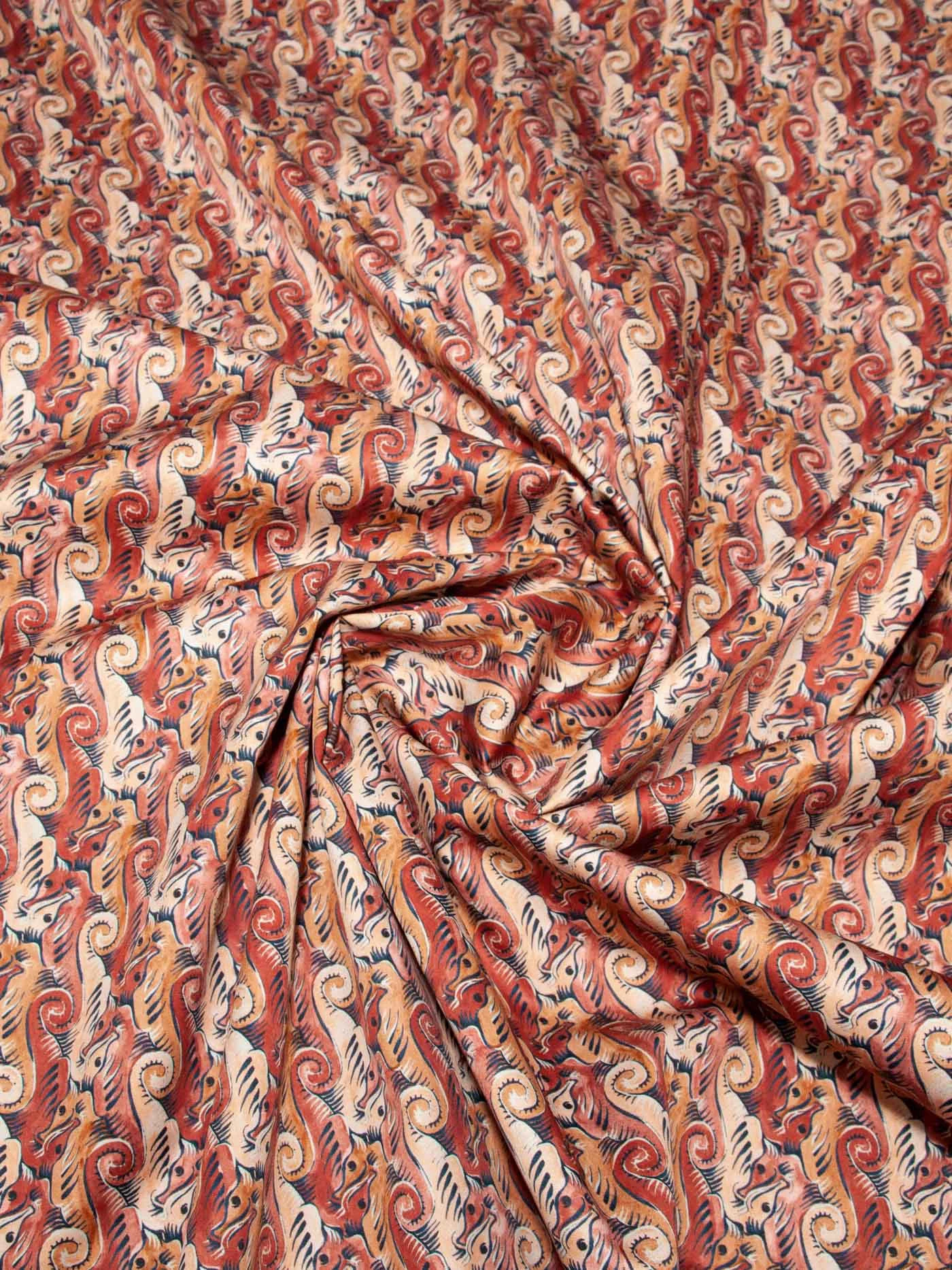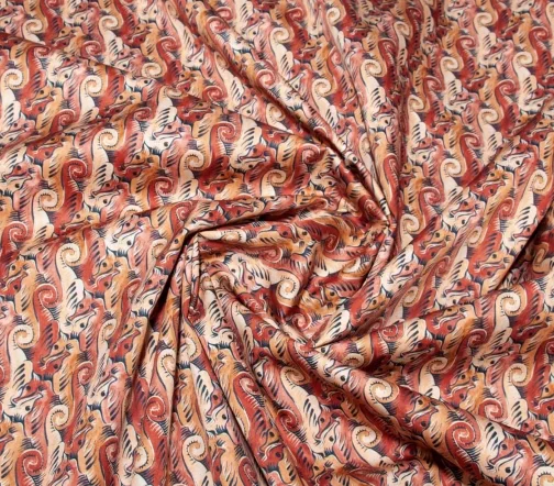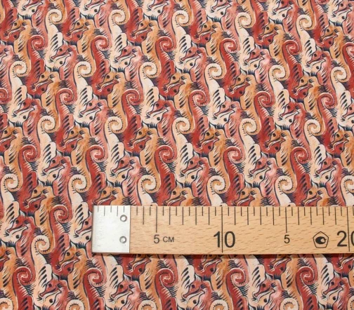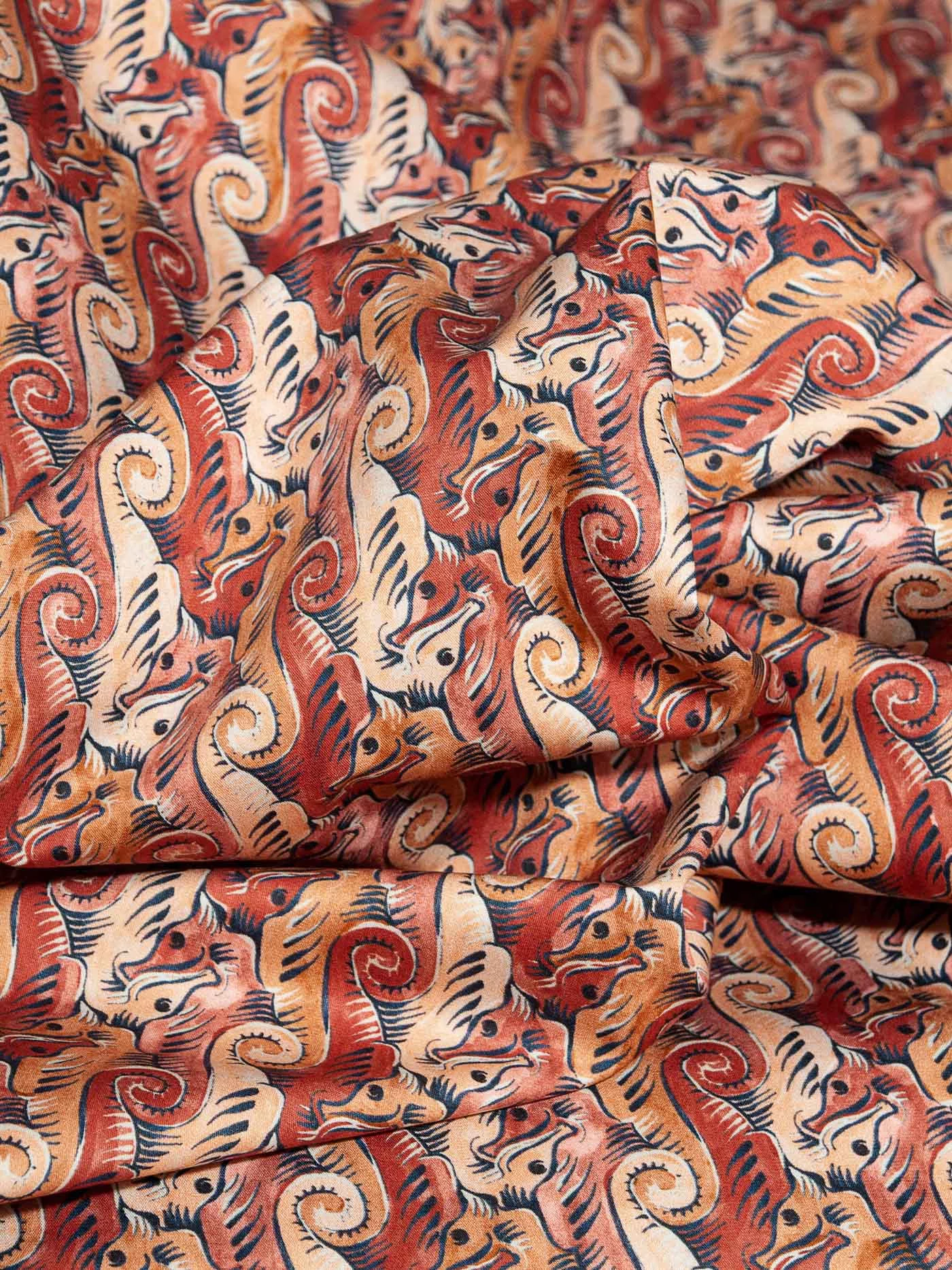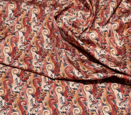 Сатин из 100% мерсеризованного хлопка в эффектной стилистики итальянского Модного Дома с авангардным принтом нового сезона seahorse-puzzle. Для пошива мужских и женских рубашек, а также платьев или юбок.