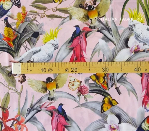 Изумительного качества, пластичный, средней плотности ближе к тонкому. Основной фон розовый. Для пошива любых изделий от топа до платья.