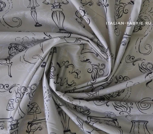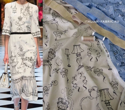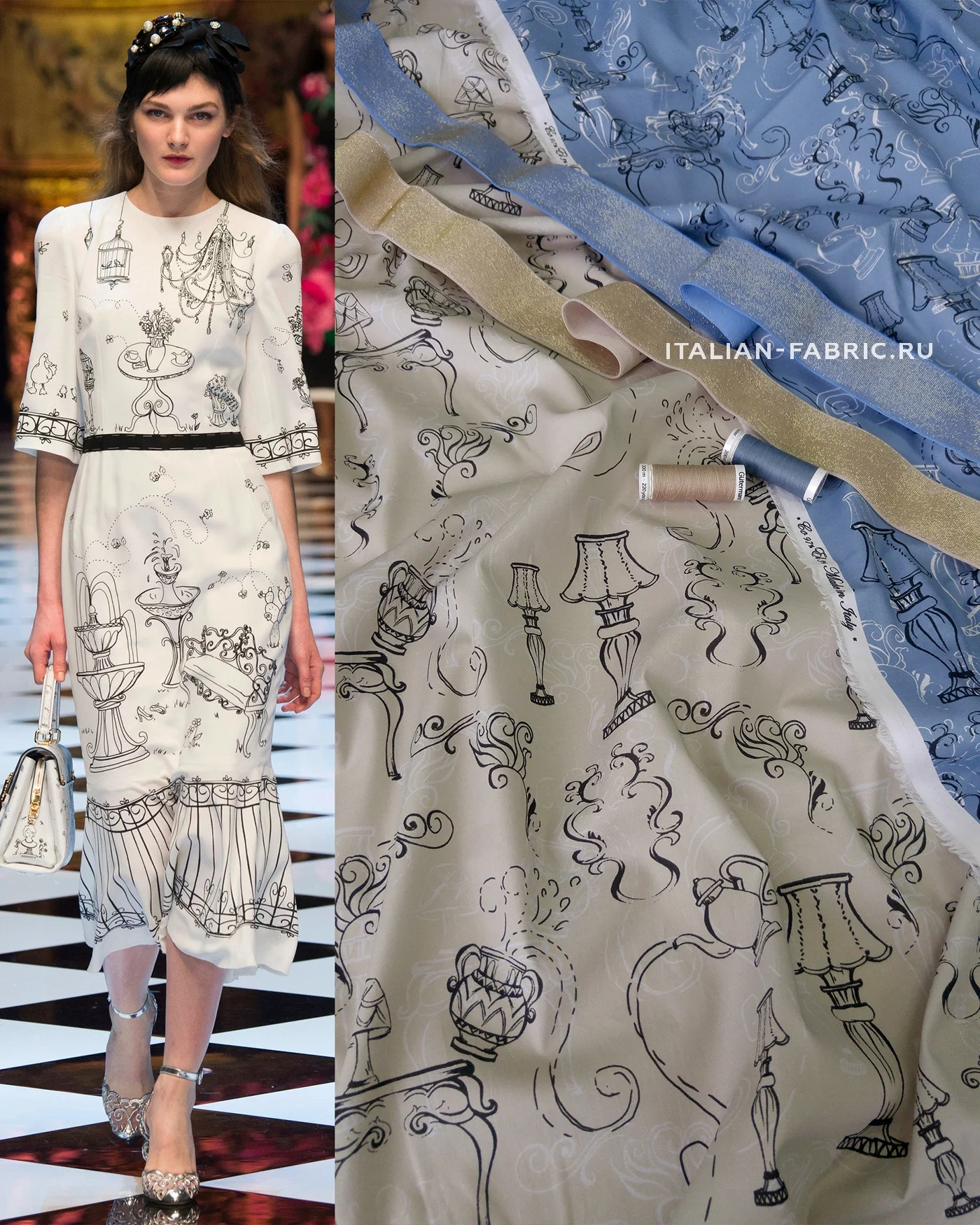 Доменико Дольче и Стефано Габбана любят удивлять неординарными материалами в своих коллекциях, как этот чудесный поплин с графичным изображением предметов интерьера. Оригинально? Да! Красиво? Очень!