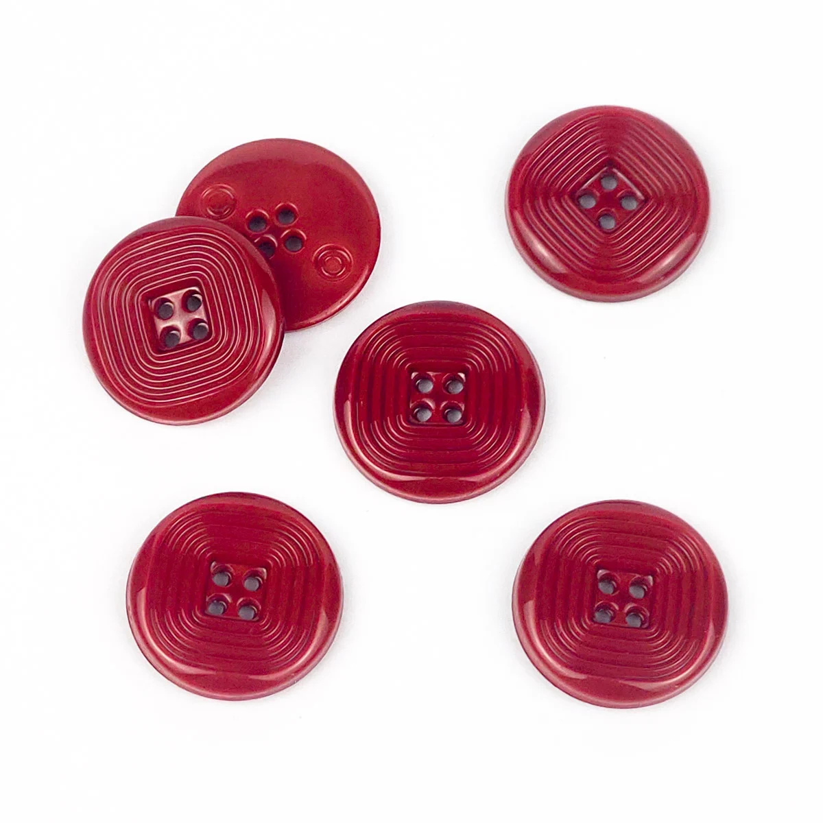 Пуговица, 4отв., пластик, цв. красный, 15 мм