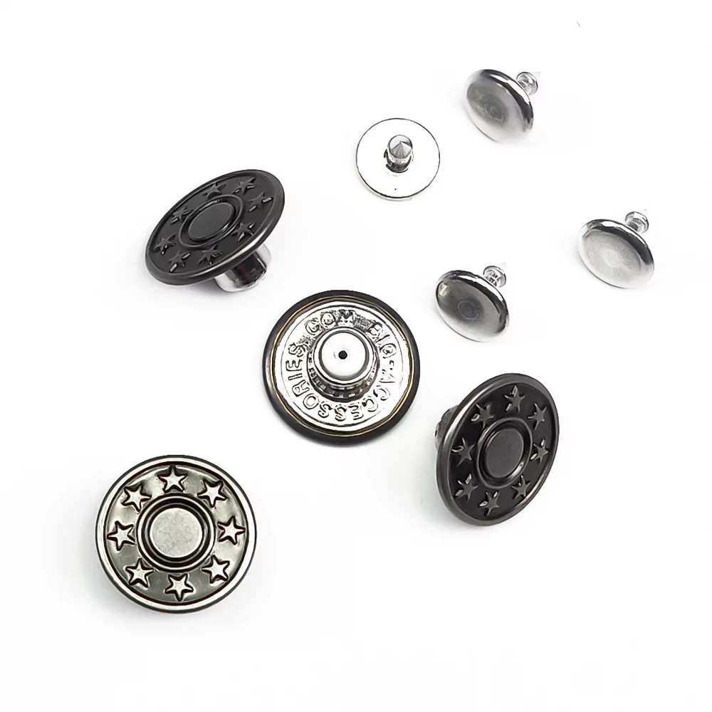 Пуговица джинсовая "Звезды", на ножке, 17 мм, металл, цвет темное серебро, 3121