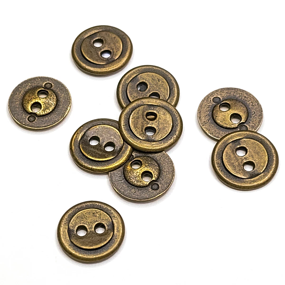 Пуговица DILL, 2 отв., металл, цвет состаренная латунь, 15 мм