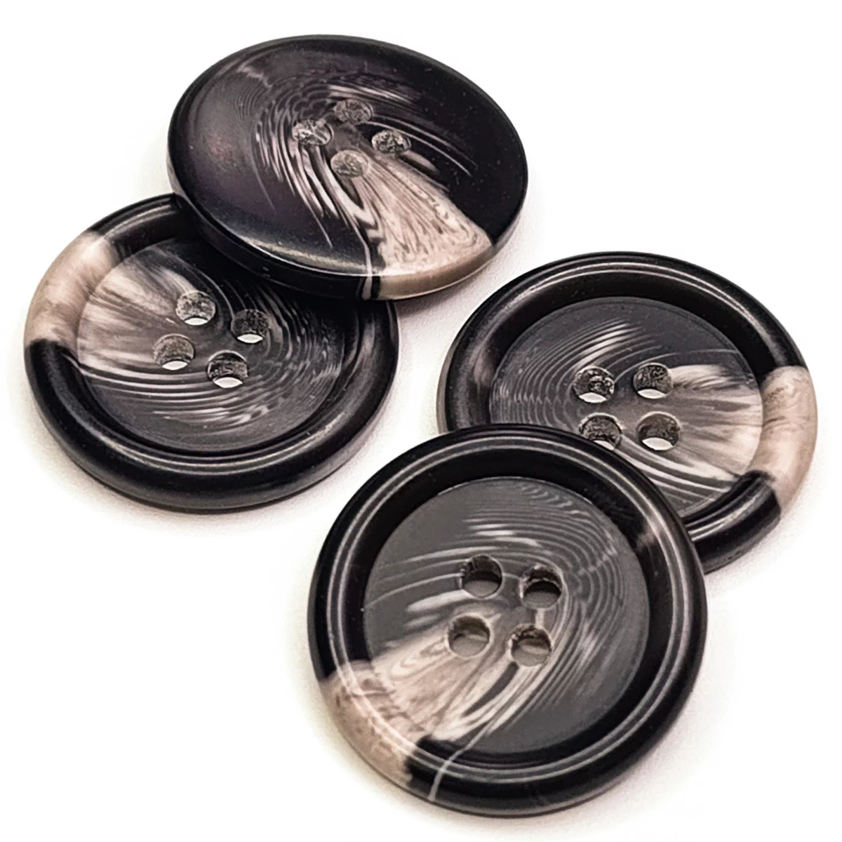 Пуговица DILL, 4 отв., пластик, цвет черный/серый, 25 мм