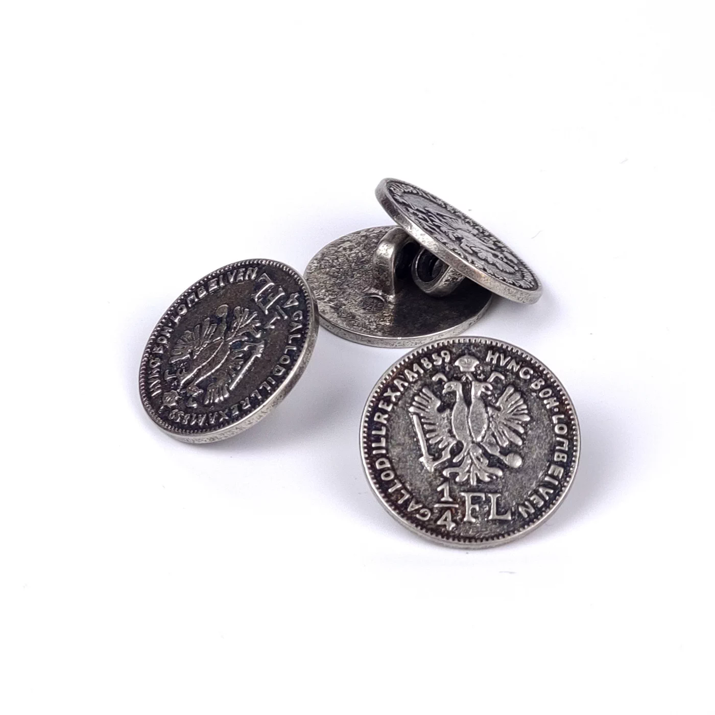 Металлическая пуговица на ножке в виде австрийской монеты - флорина, на которой красуется двуглавый орёл.