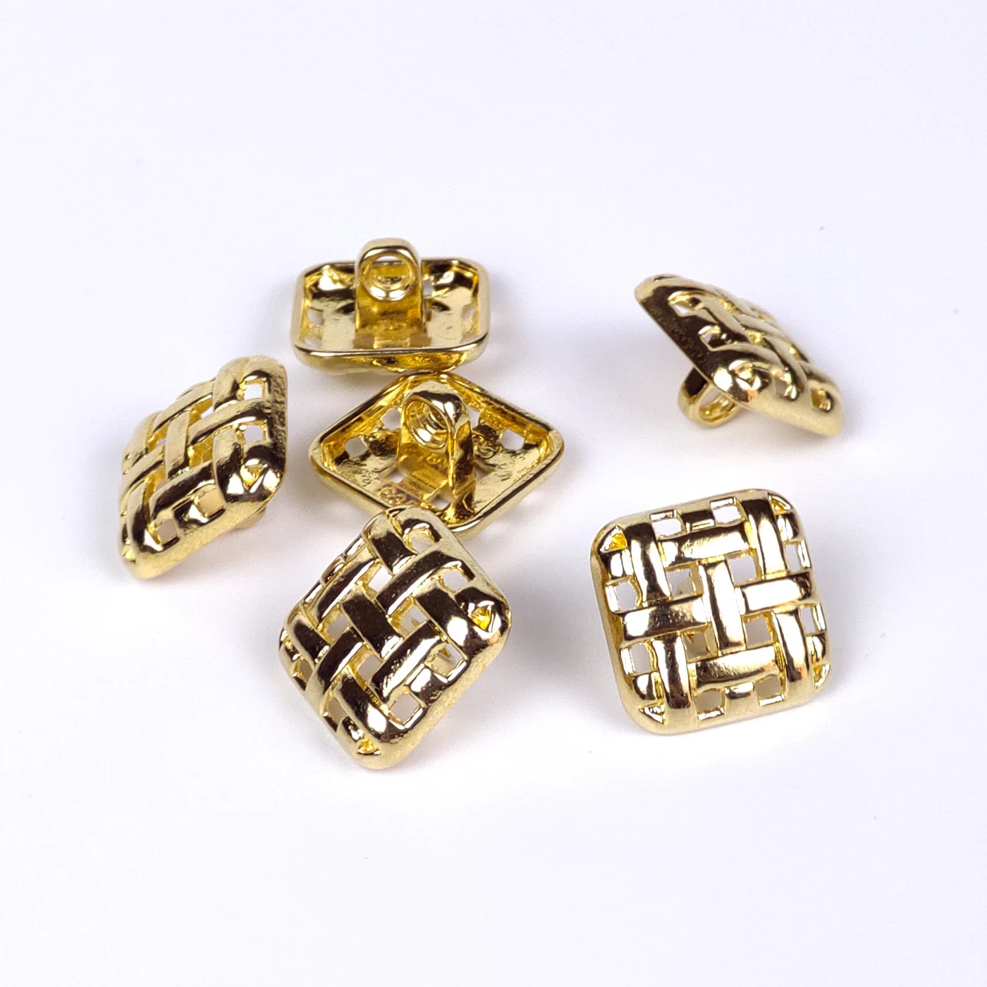 Металлическая плательно-костюмная квадратная пуговица с красивым переплетением.