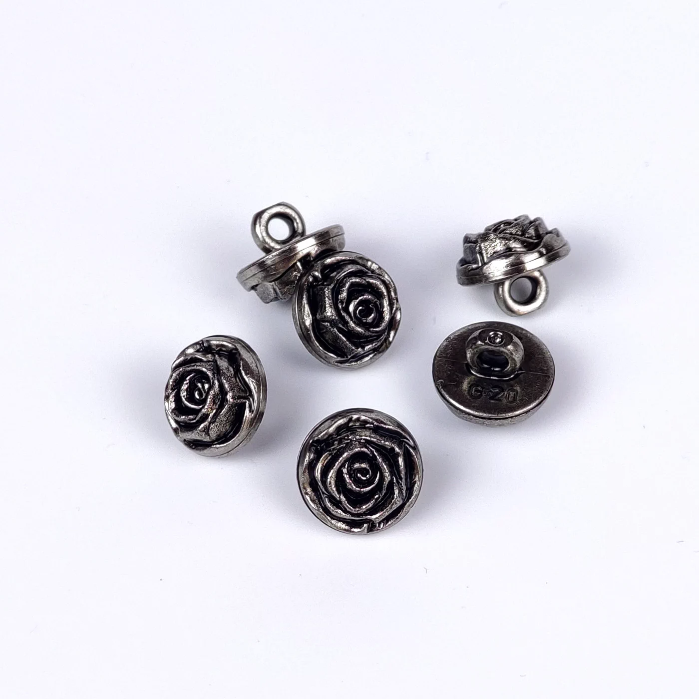 Пуговицы на ножке из металлизированной пластмассы в виде узорчатых роз.