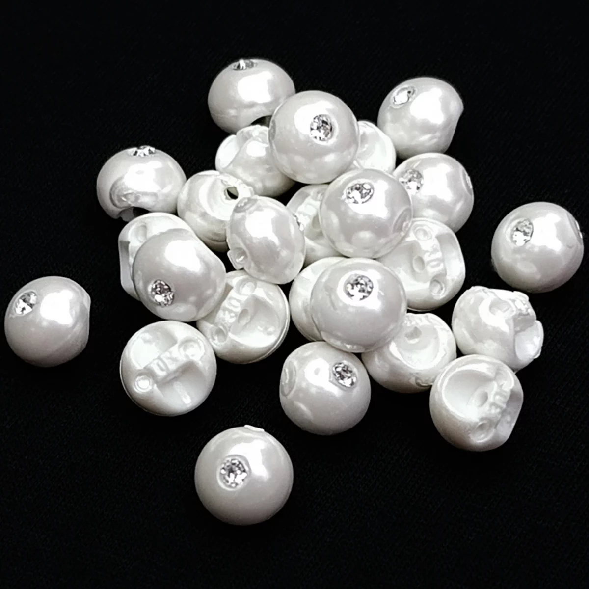 Пуговица DILL "Шарик со стразом", на ножке, пластик, цвет белый, 10 мм