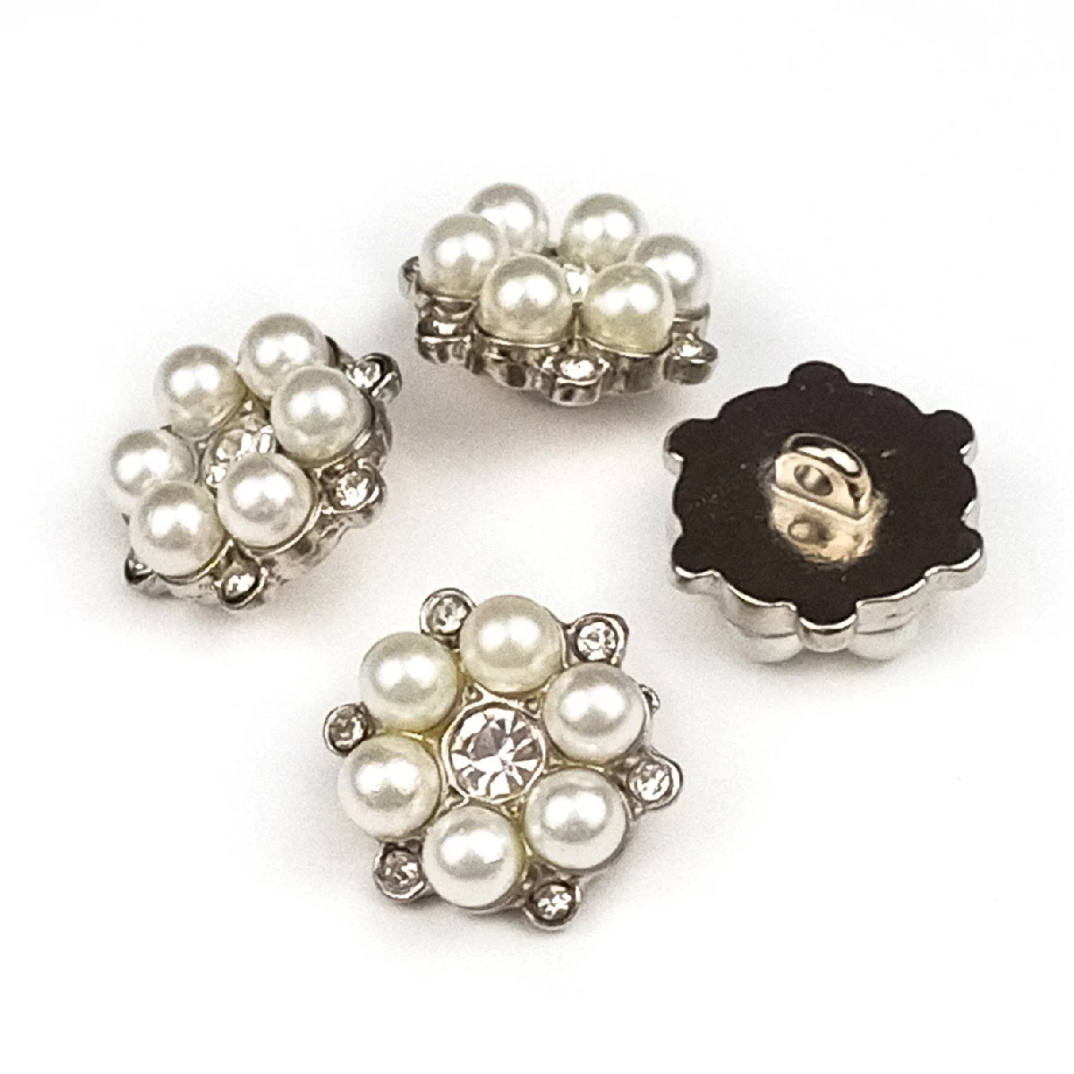 Пуговица Disboton "Жемчужный цветок", 22 мм, на ножке, металл/стразы, цв.серебро