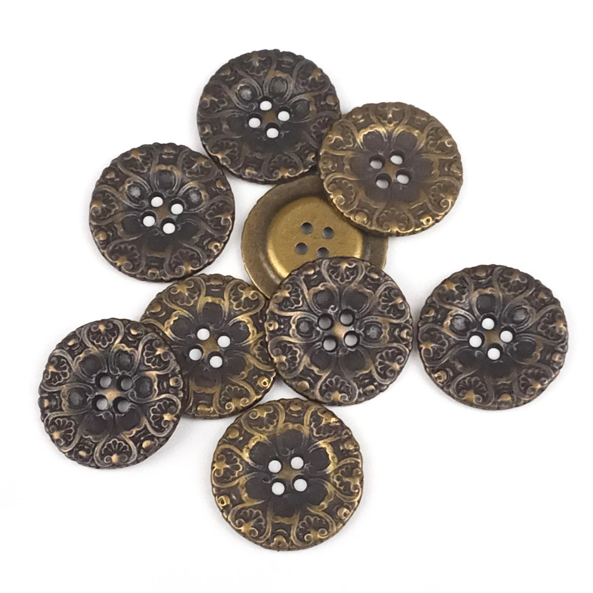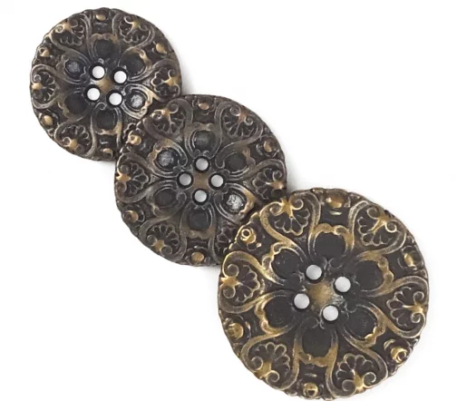 Пуговица Disboton "Орнамент", 20 мм, 4 отв., металл, цвет состар.бронза