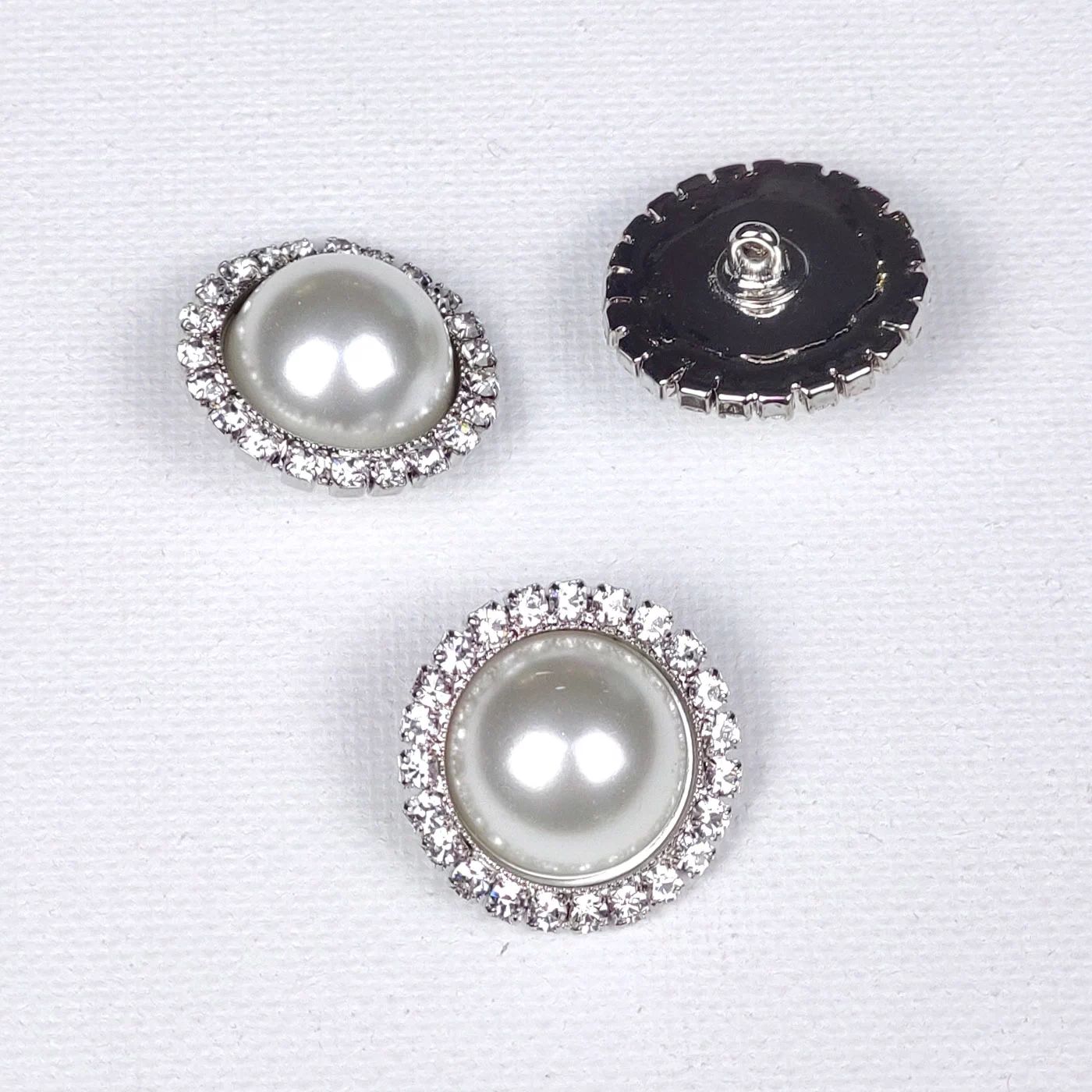 Изящная пуговица со стразами Сваровски и жемчужиной с перламутровым напылением.
