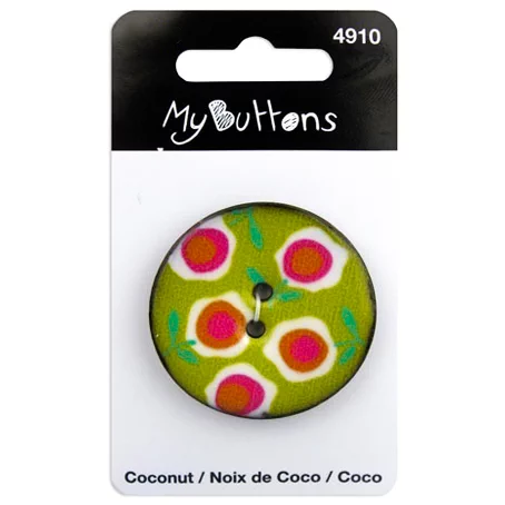 Пуговица "My Buttons" Lime Flowers, 34 мм, 2 отв., кокос, цвет лайм/розовый/зеленый, 630004910