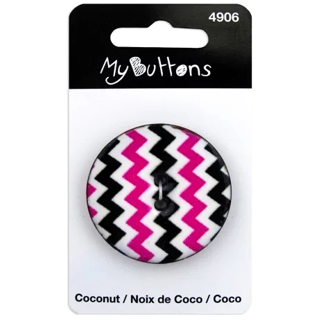 Пуговица "My Buttons" Pink & Black Chevron, 34 мм, 2 отв., кокос, цвет роз/черн/белый, 630004906