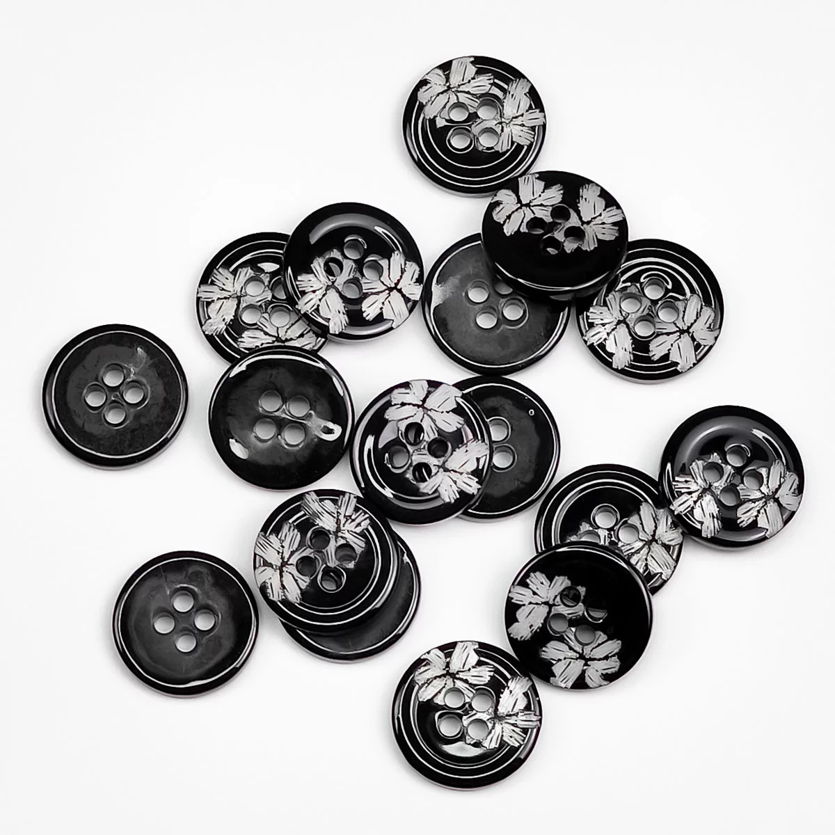 Пуговица Sandra "Два цветка", 15 мм, 4 отв., пластик, цвет черный/белый