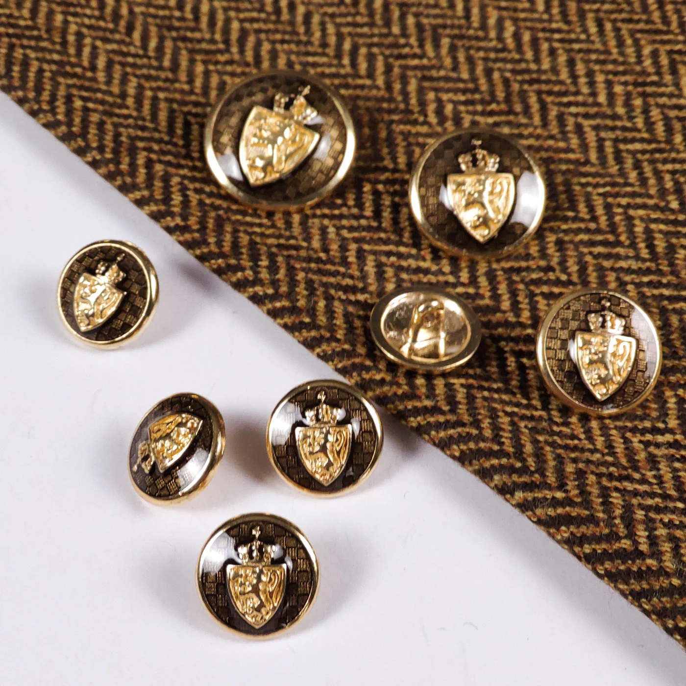 Пуговица Sandra "Герб Лев", на ножке, 15 мм, металл/эмаль, золото/т.болот, 1417Z-24-1/5006
