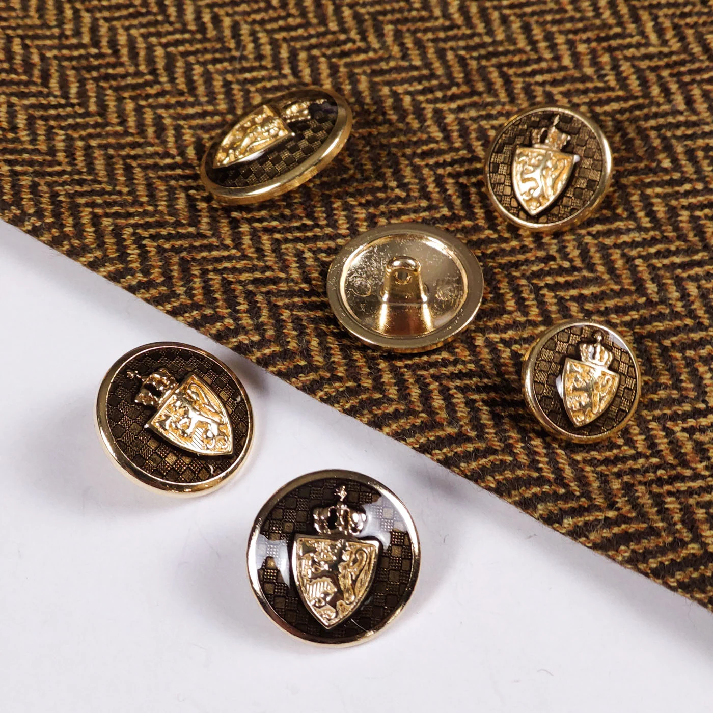 Пуговица Sandra "Герб Лев", на ножке, 20 мм, металл/эмаль, золото/т.болот, 1417Z-32-1/5006