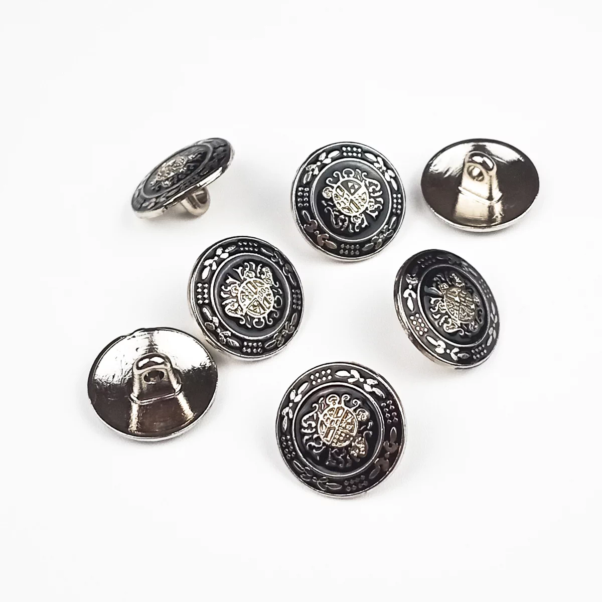 Пуговица Sandra "Герб", на ножке, 15 мм, металл/эмаль, серебро/черный, 3814Z-24-2-395
