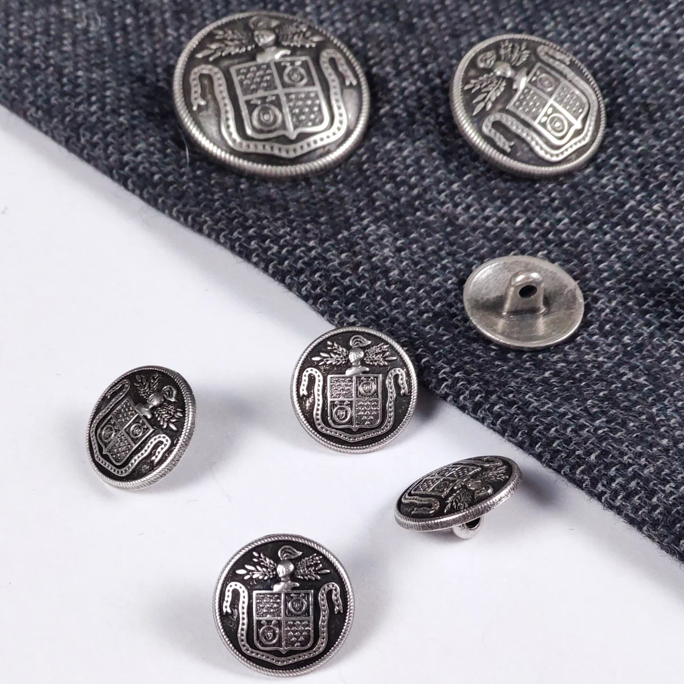 Пуговица Sandra "Герб Рыцарь", на ножке, 15 мм, металл, серебро черненое, 3708Z-24-16