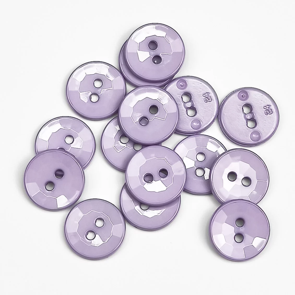 Пуговица Sandra "Грани", 15 мм, 2 отв., пластик, цвет сиреневый