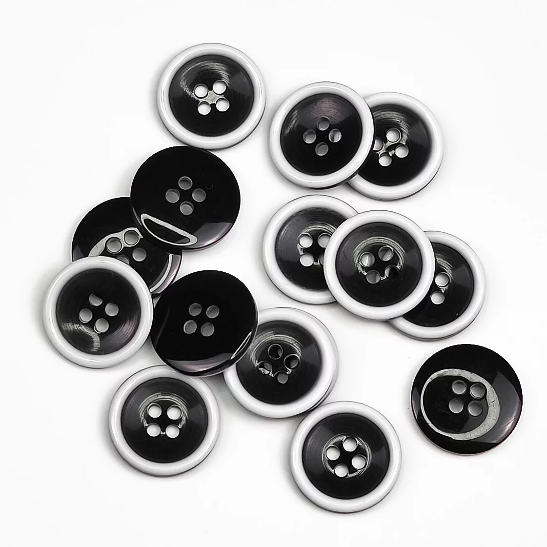 Пуговица Sandra с белым ободком, 15 мм, 4 отв., пластик, цвет черный