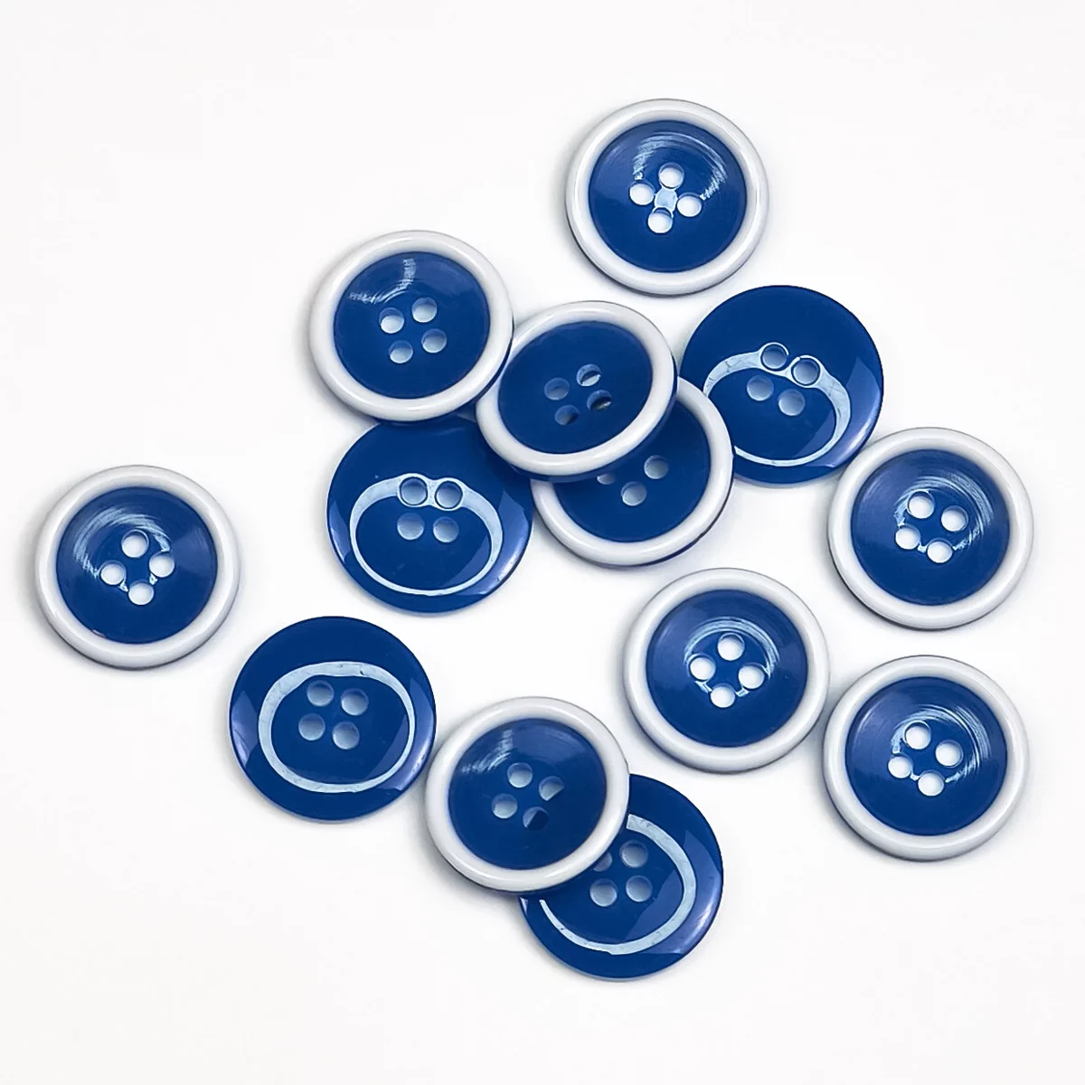 Пуговица Sandra с белым ободком, 15 мм, 4 отв., пластик, цвет синий