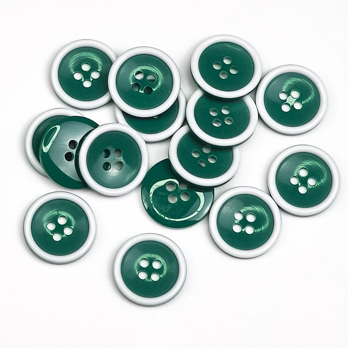 Пуговица Sandra с белым ободком, 15 мм, 4 отв., пластик, цвет зеленый
