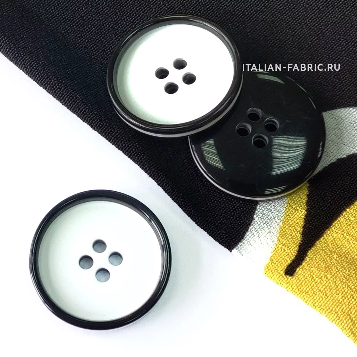 Пуговица Sandra с черным ободком, 22 мм, 4 отв., пластик, белый, 75547-36-1
