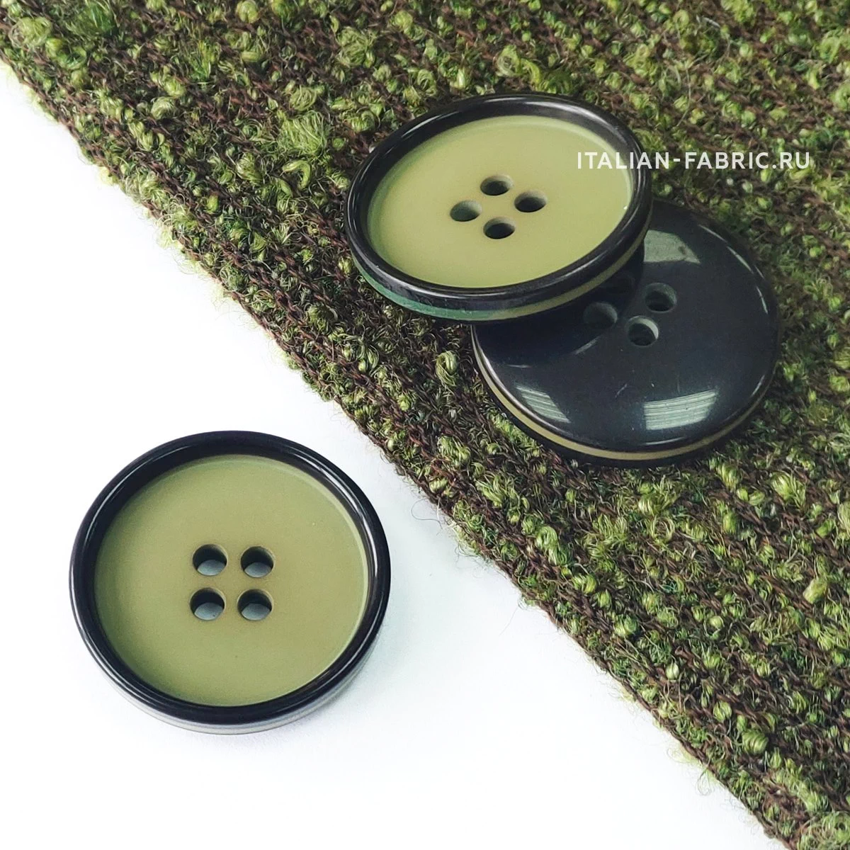 Пуговица Sandra с черным ободком, 22 мм, 4 отв., пластик, хаки, 75547-36-P3392