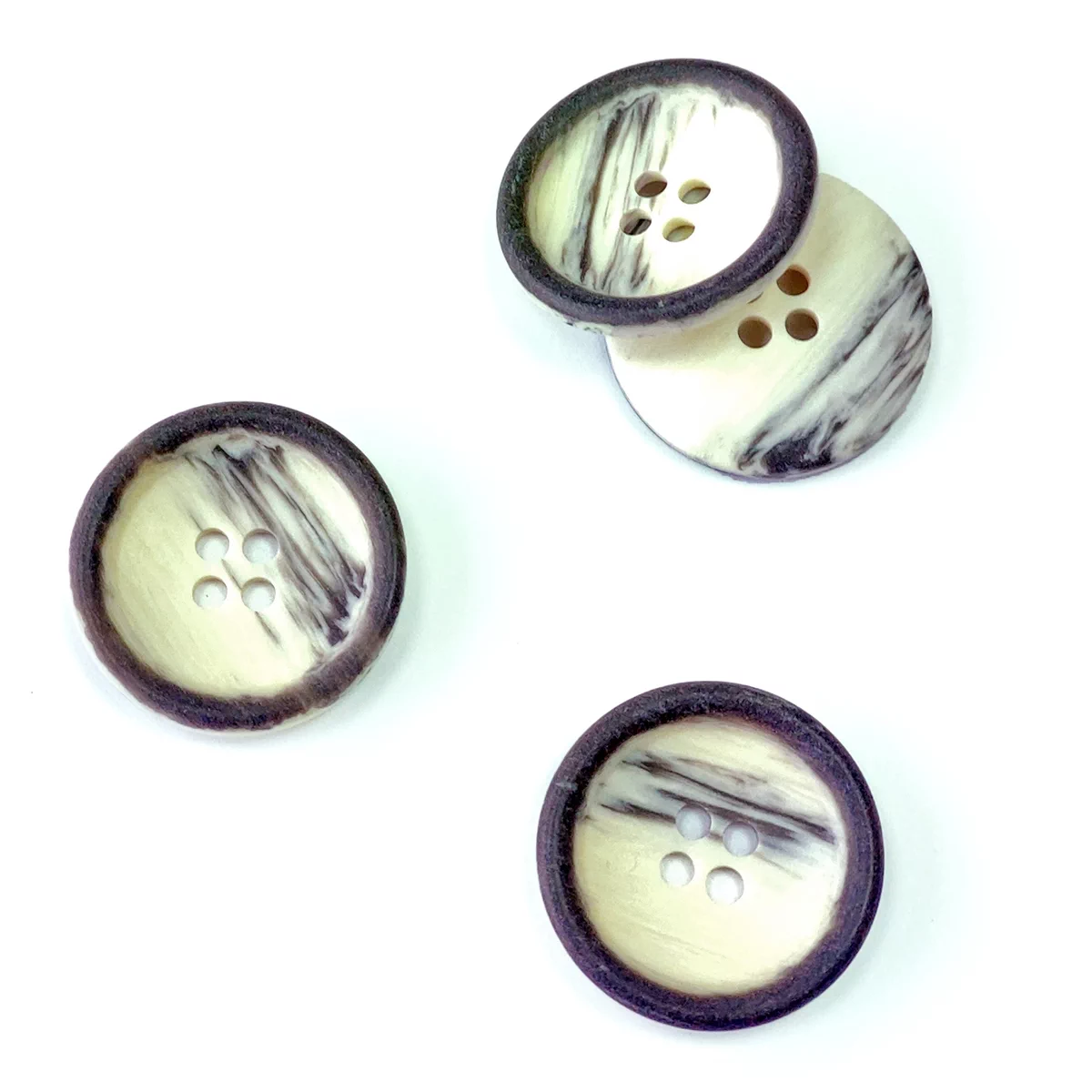 Пуговица Sandra с т-серым ободком, 22 мм, 4 отв., пластик, слоновая кость, 75618-36-4