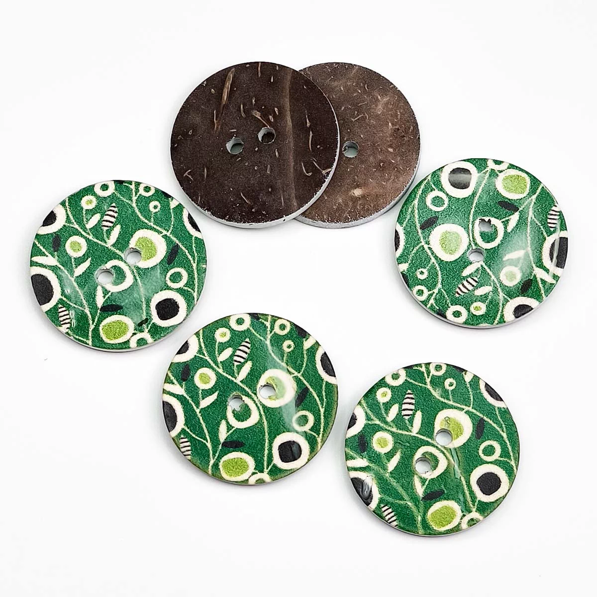 Пуговица Sandra "Цветы", 30 мм, 2 отв., кокос, цвет зеленый