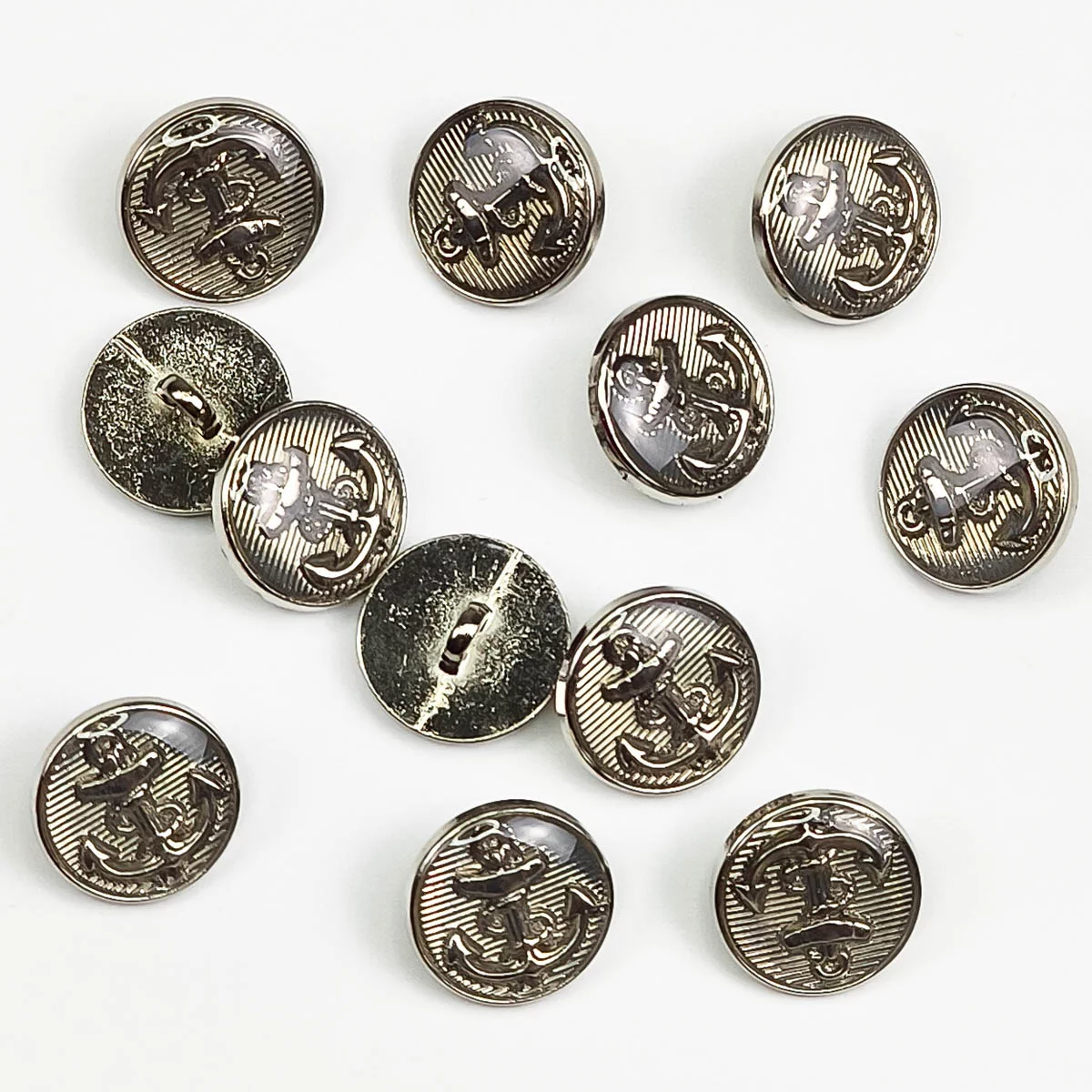 Пуговица Sandra "Якорь", на ножке, 15 мм, металл/смола, цвет серебро