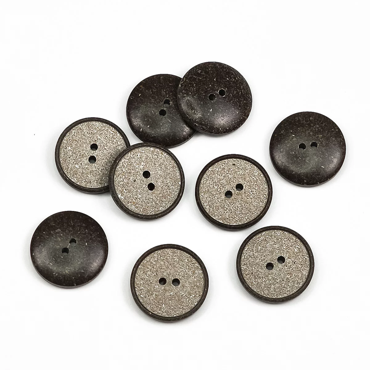 Пуговица Union Knopf, 20 мм, 2 отв., рисовая шелуха/пластик, цвет серый/коричневый