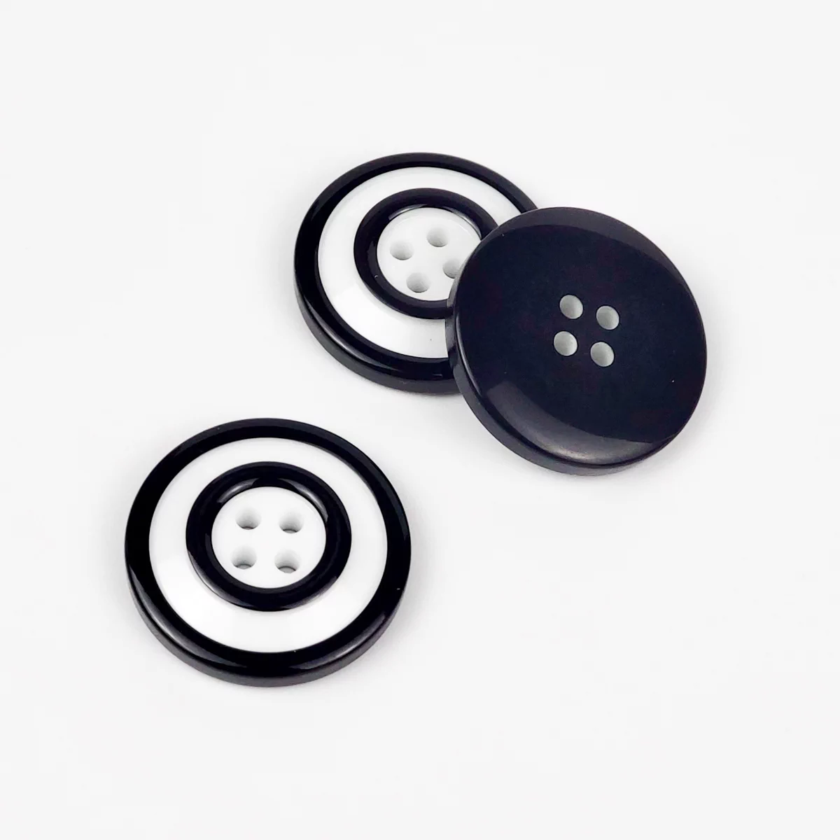 Оригинальная пластиковая пуговица в классическом черно-белом сочетании.
