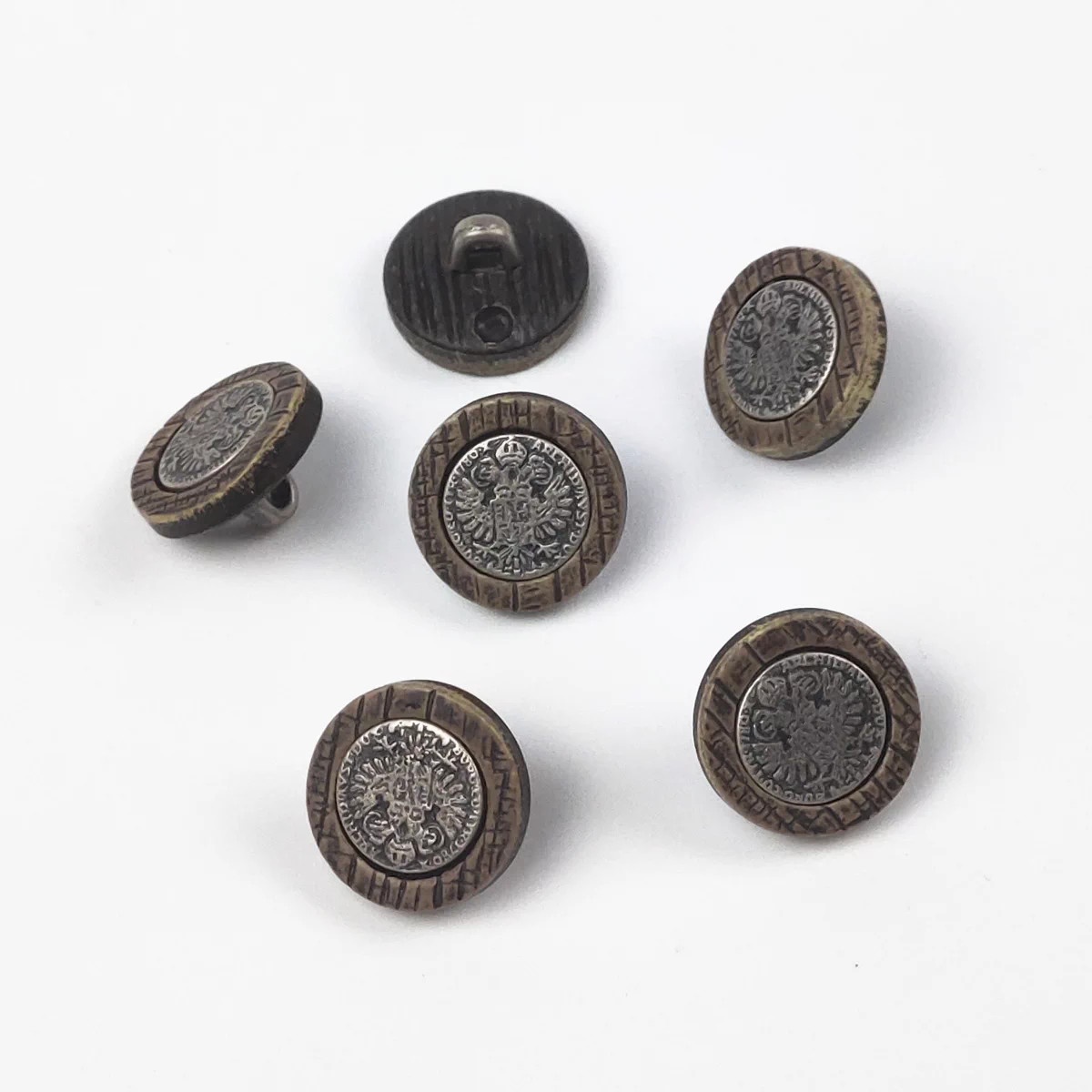 Пуговицы, Union Knopf, "Герб с орлом", на ножке, пластик, металл, цвет дерева/никель, 15 мм.