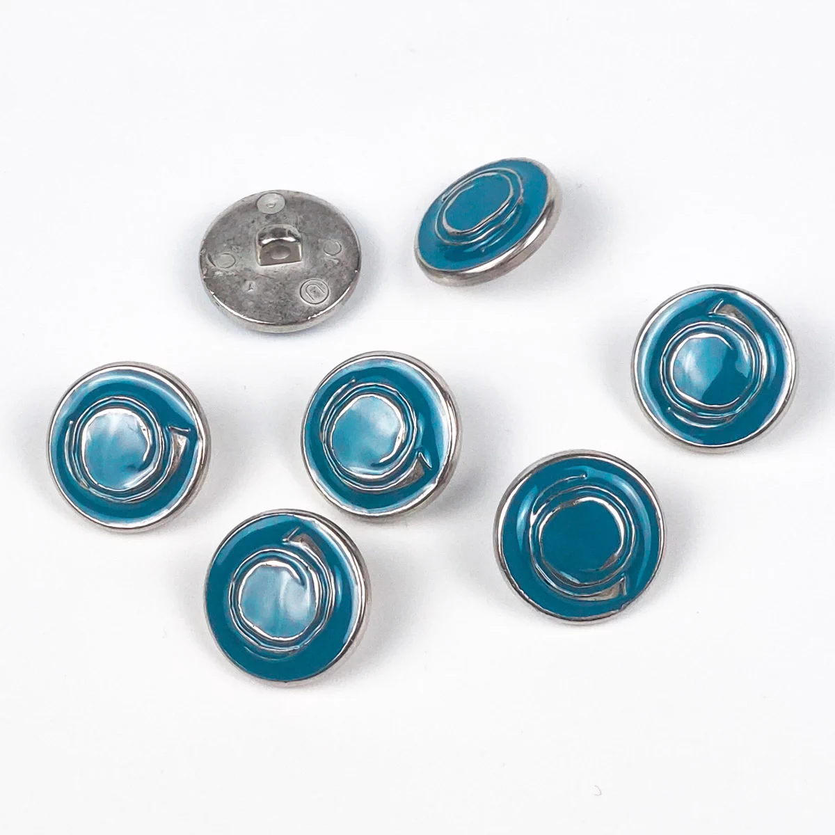 Пуговицы, Union Knopf, "Горн", круглые, на ножке, металл, цвет голубой/никель, 18 мм.