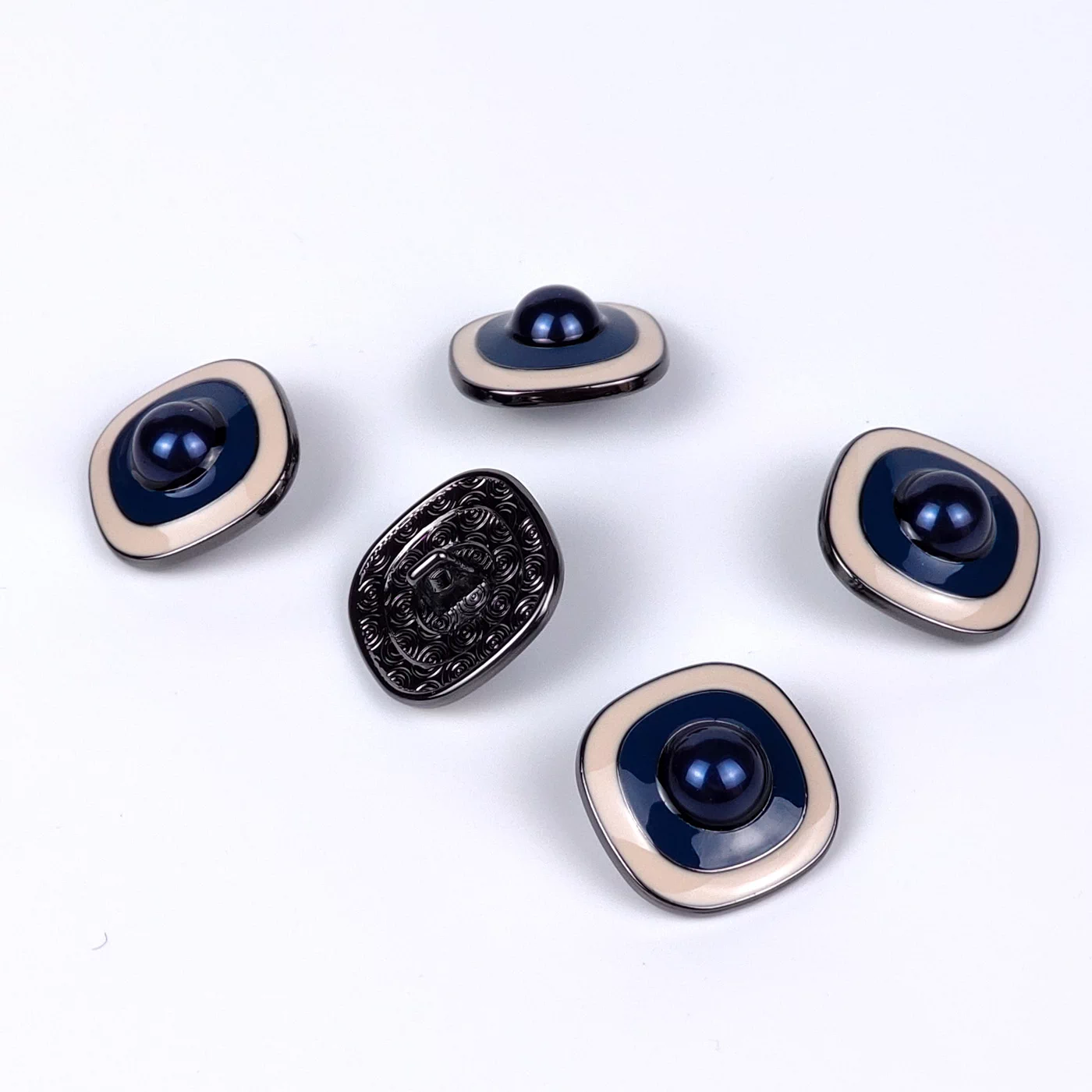 Красивая металлическая пуговица на ножке в стиле шанель. В центре украшена вставкой - жемчужиной, обрамление с эмалью в одном тоне. Для Ваших стильных твидовых платьев и костюмов.