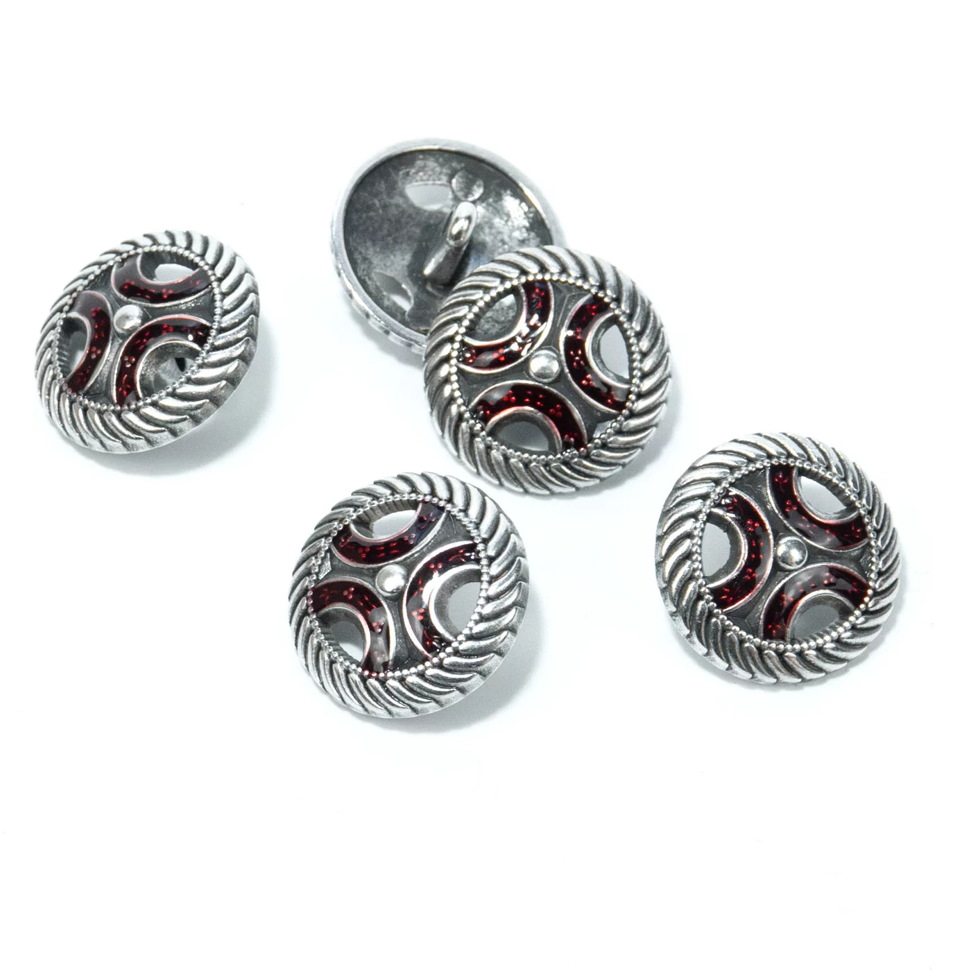 Пуговица Union Knopf, на ножке, металл, цвет красный/сост.серебро, 20 мм