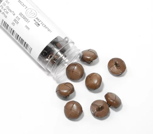 Пуговица Union Knopf, на ножке, натуральная кожа, цвет св.коричневый, 15 мм