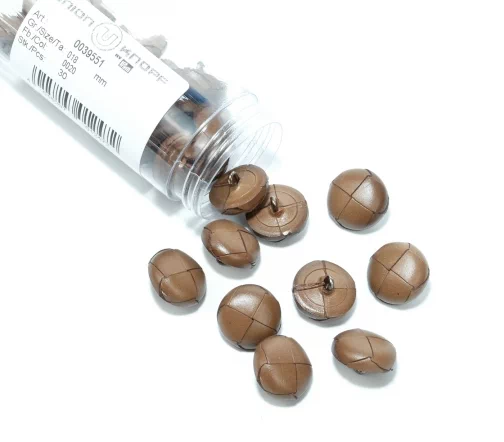 Пуговица Union Knopf, на ножке, натуральная кожа, цвет св.коричневый, 18 мм