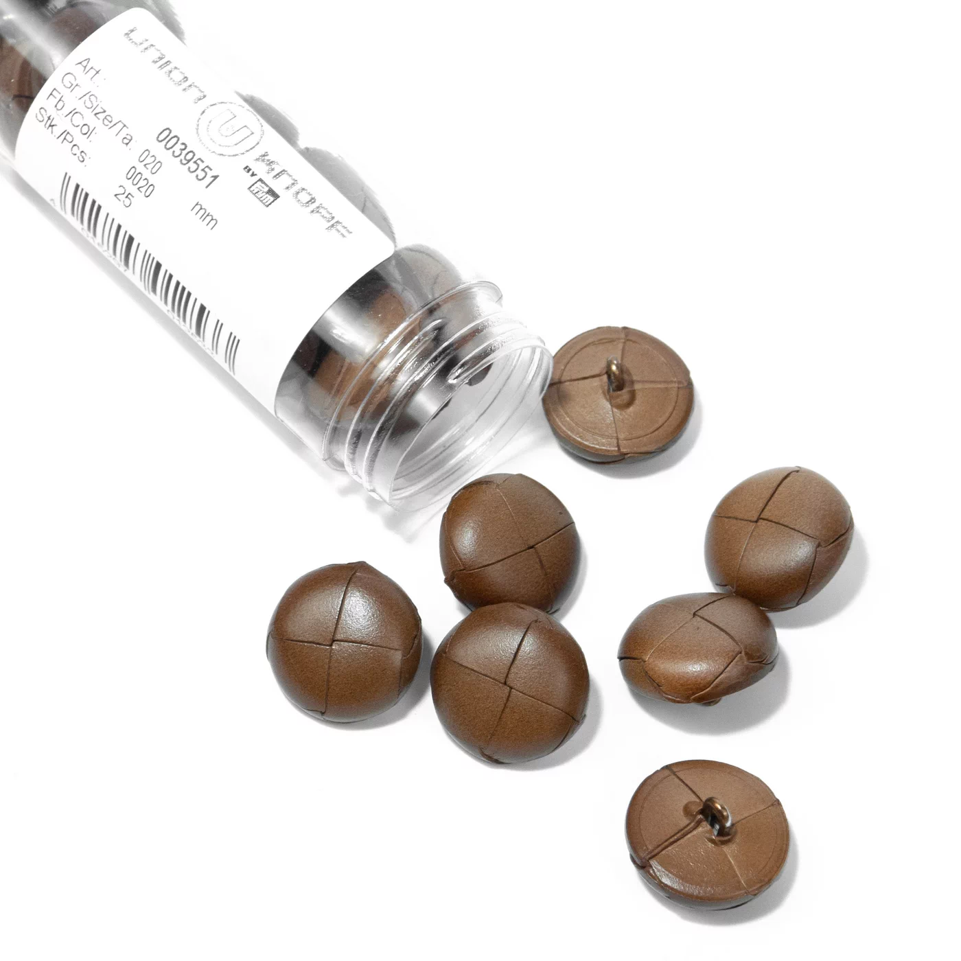Пуговица Union Knopf, на ножке, натуральная кожа, цвет св.коричневый, 20 мм